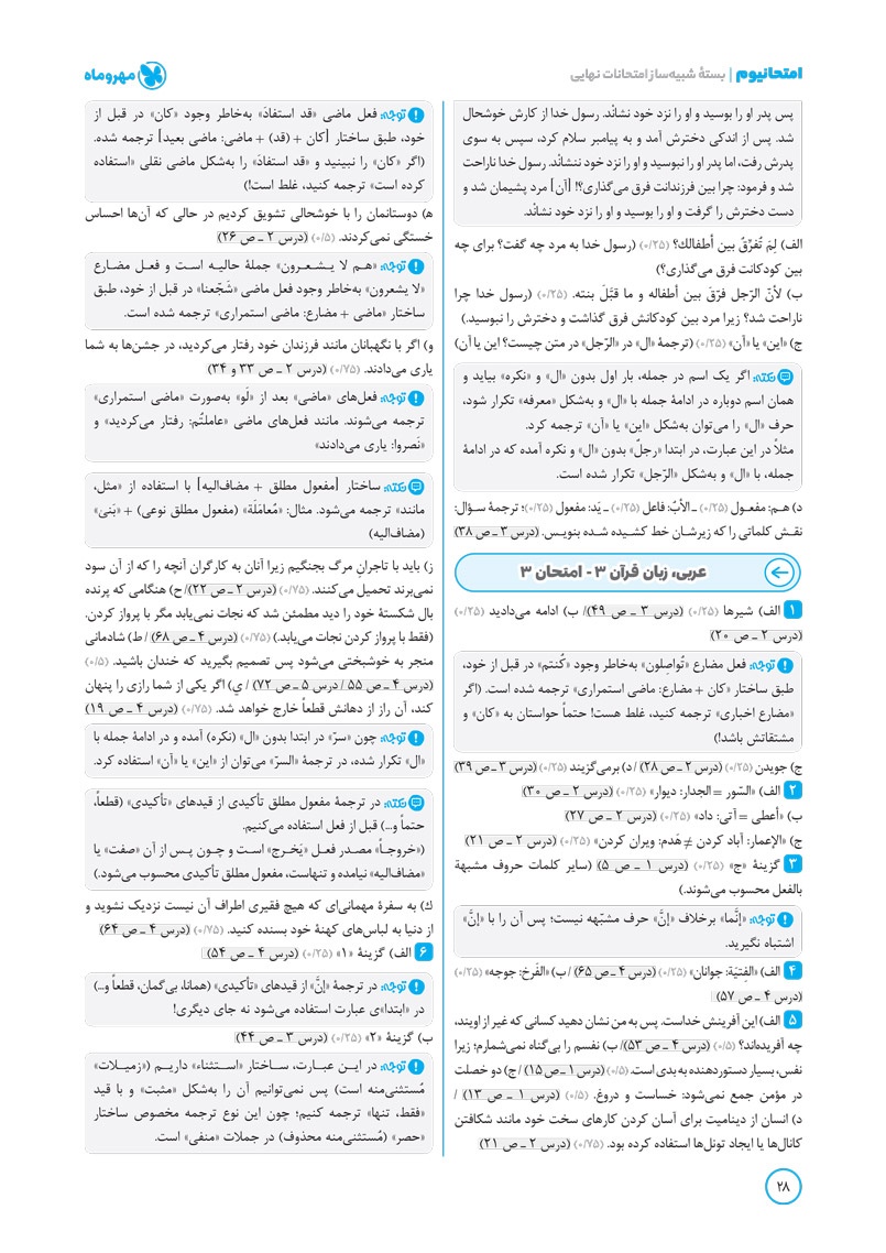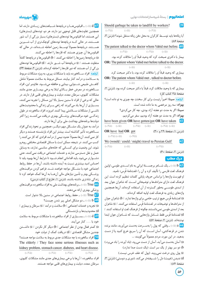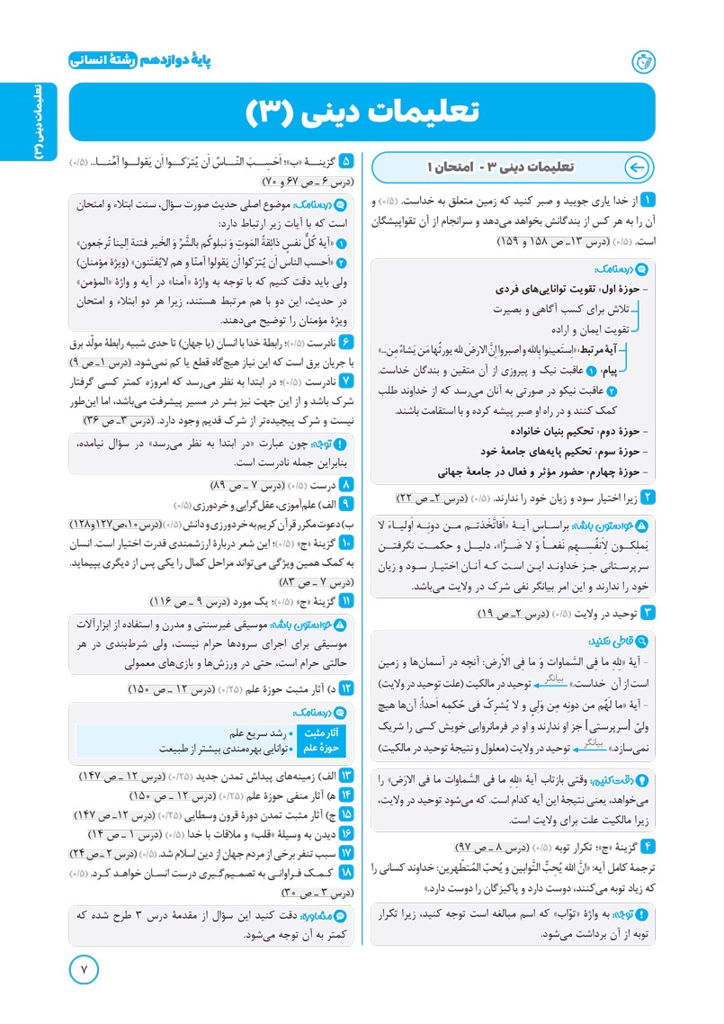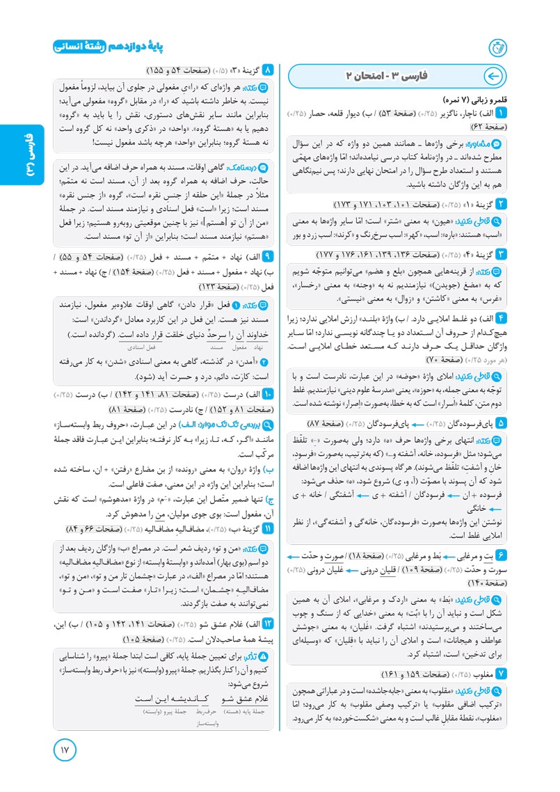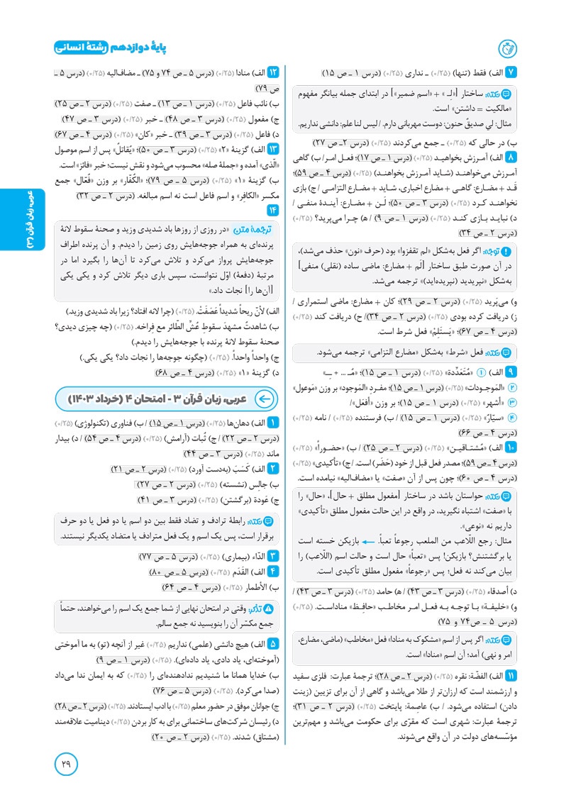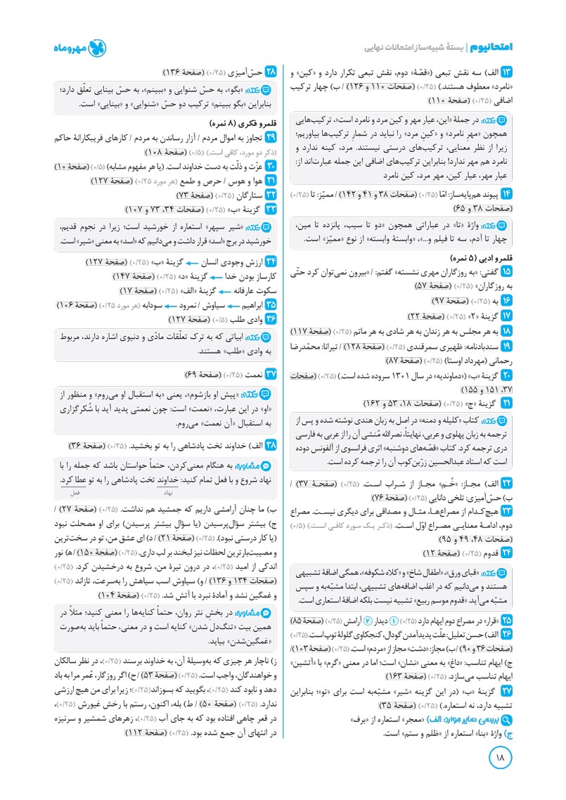 پاسخنامه واقعاً تشریحی و تحلیل پاسخها به همراه ریزبارم و آدرس دقیق هر سوال