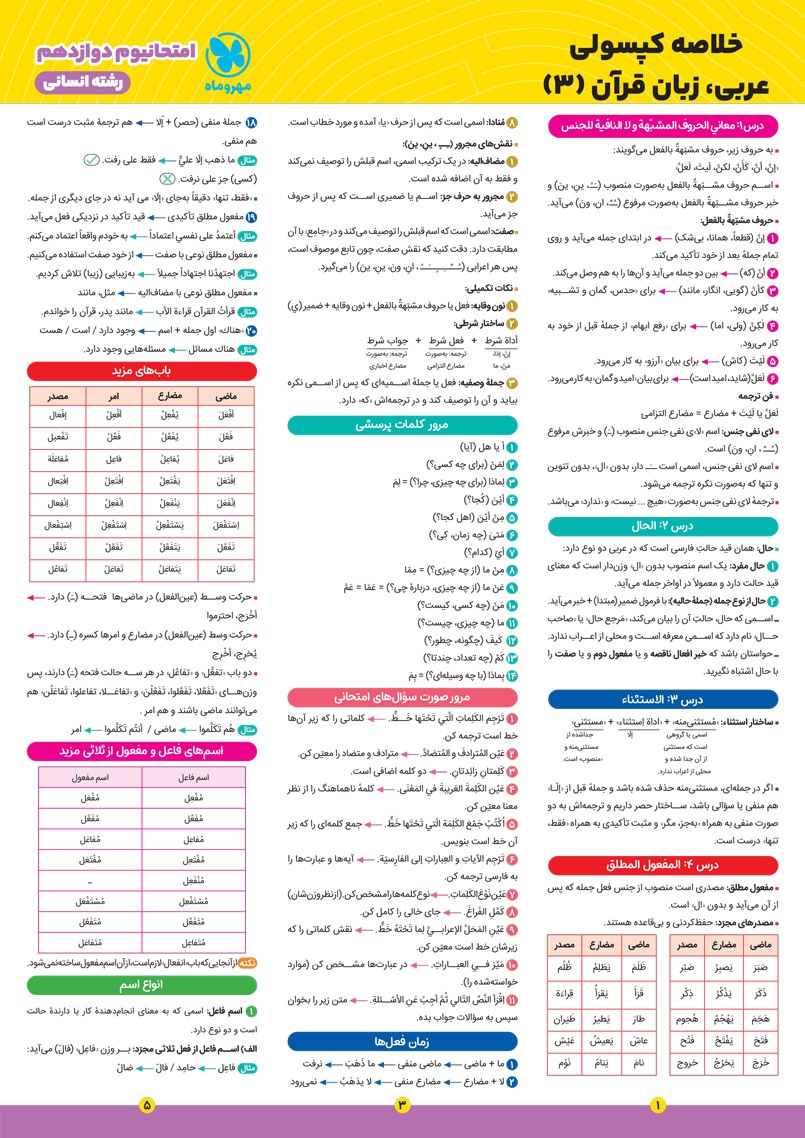 مرور مطالب مهم هر درس در خلاصه های کپسولی