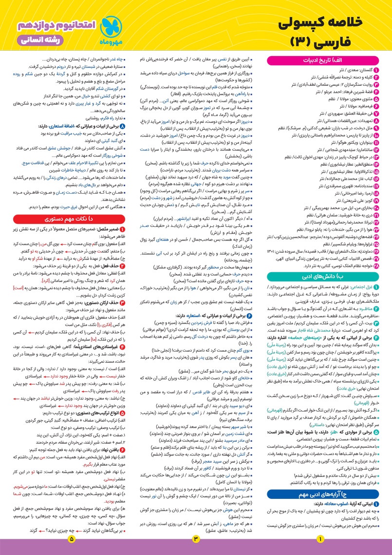 خلاصه های کپسولی جمع بندی به سبک امتحان نهایی به صورت هر درس در یک برگه