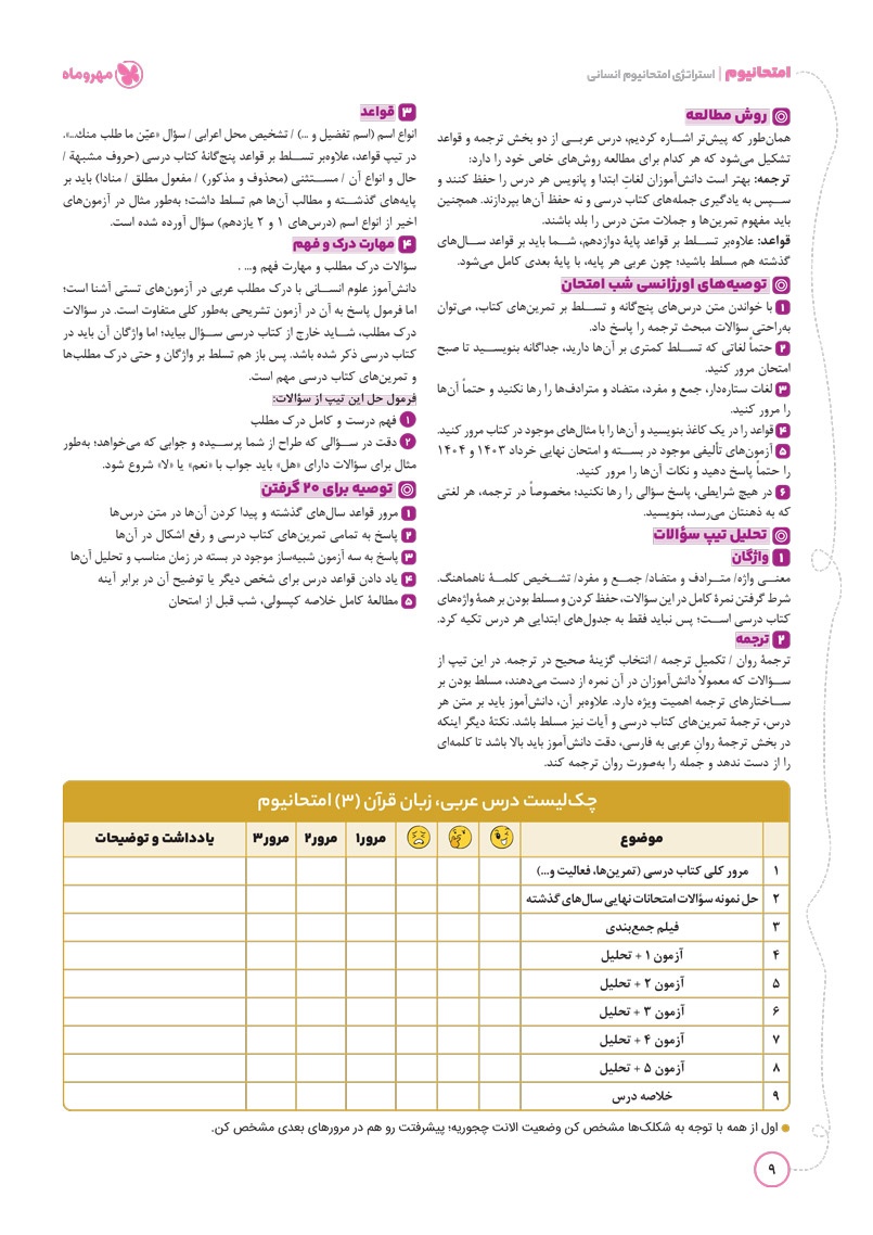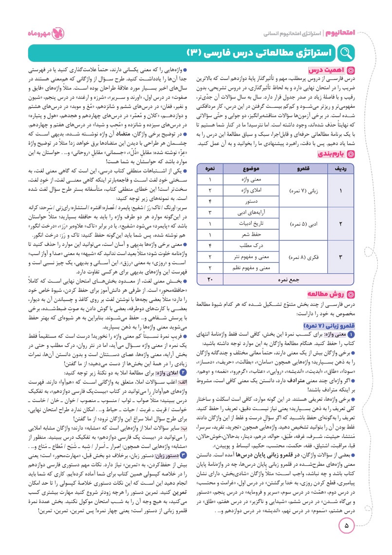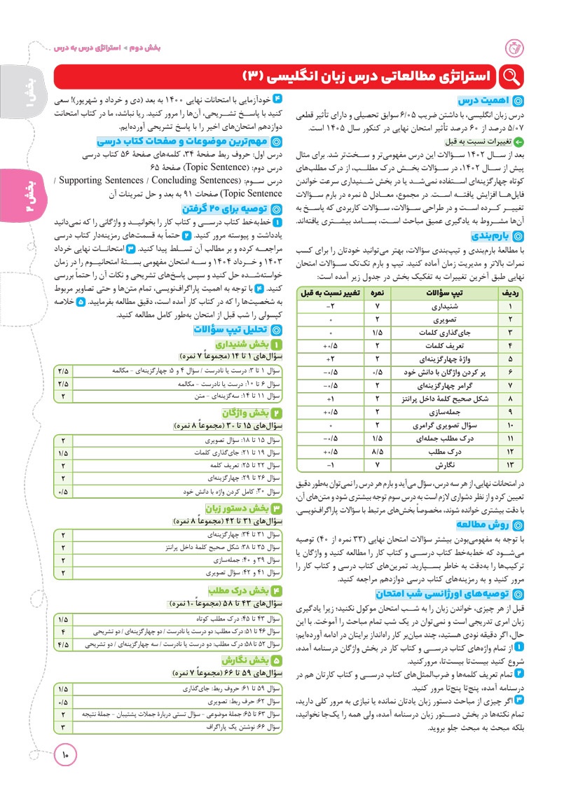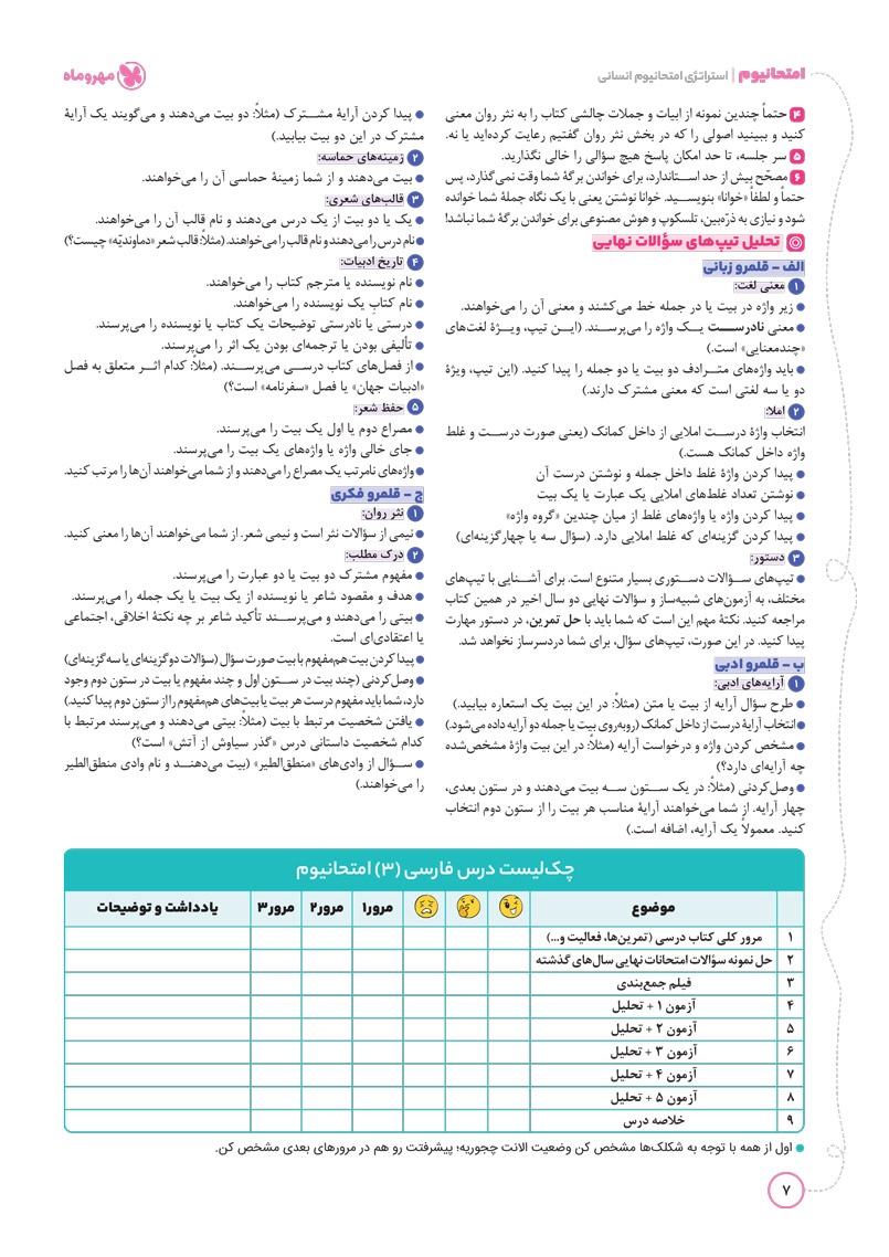 دفترچه ی استراتژی و تحلیل انواع تیپهای سوالات نهایی و برنامه ی مطالعاتی