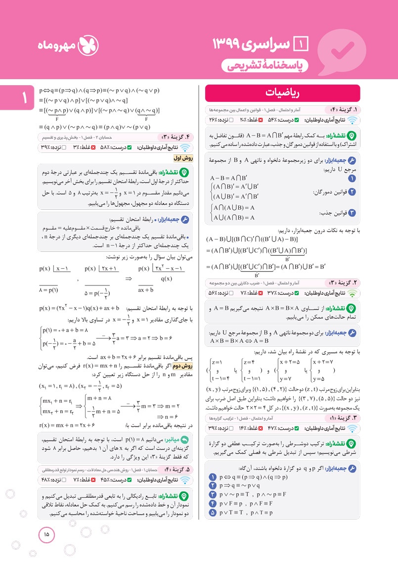 - پاسخنامهی تشریحی 13 دوره کنکور سراسری داخل و خارج کشور - پاسخنامهی تشریحی 1 دوره آزمون تالیفی - پاسخگویی به سوالات کنکور توسط برجسته ترین استادان کشور - نظارت کیفی توسط دپارتمانهای تالیف مهروماه - دقیقترین پاسخ ها به همراه نکات هر تست - پاسخهای کاملا تشریحی با تحلیل گزینهها و راهحلهای مختلف
