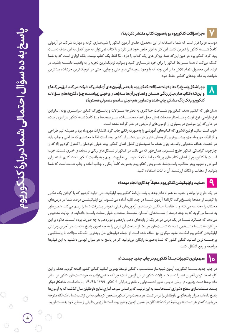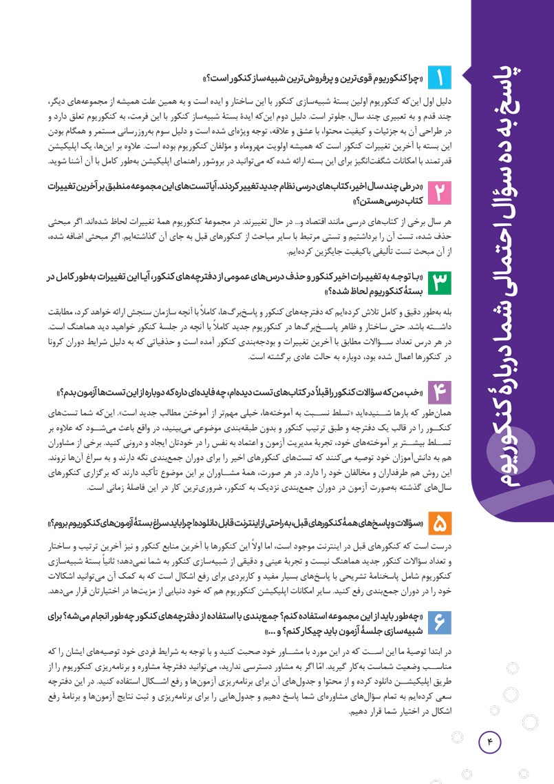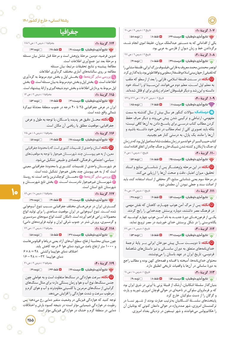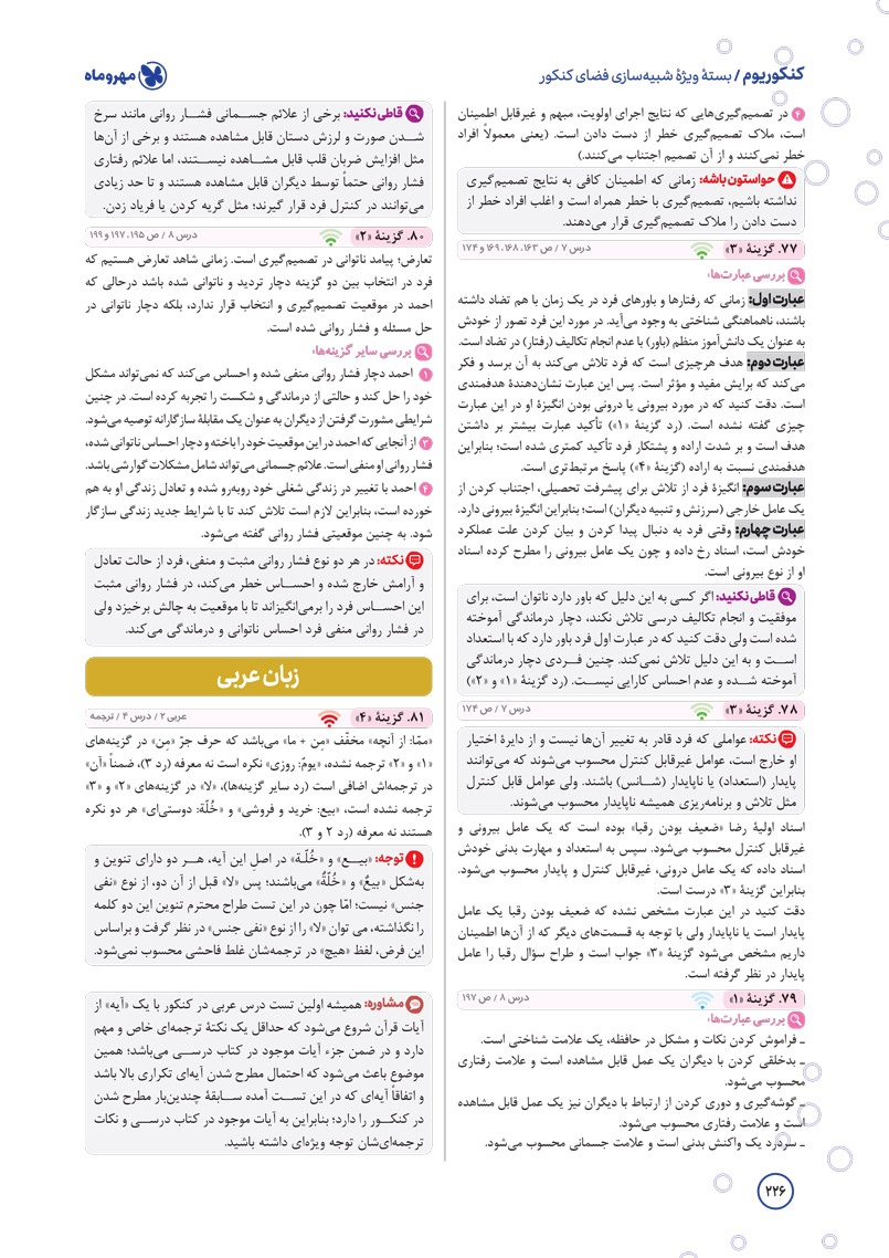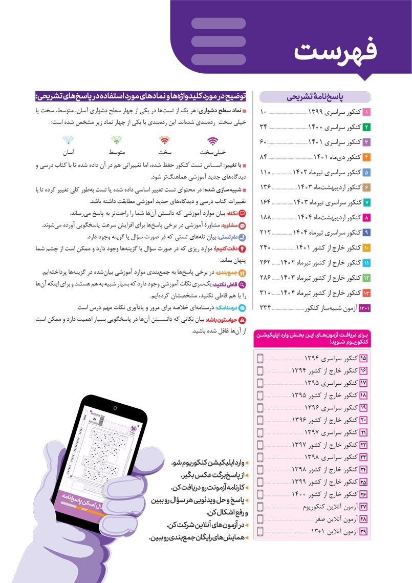 - پاسخنامهی تشریحی 13دوره کنکور سراسری داخل و خارج کشور و شبیه ساز کنکور - پاسخنامهی کاملا تشریحی با تحلیل گزینهها و راهحلهای مختلف - استفاده از کادرهای آموزشی کاربردی برای فهم بهتر مطالب - پاسخگویی به سوالات کنکور توسط برجسته ترین استادان کشور - دقیقترین پاسخ ها به همراه نکات آموزشی هر تست - نظارت کیفی توسط دپارتمانهای تالیف مهروماه و مرکز تخصصی علوم انسانی هومان