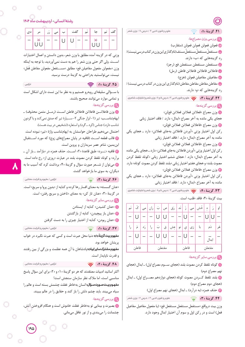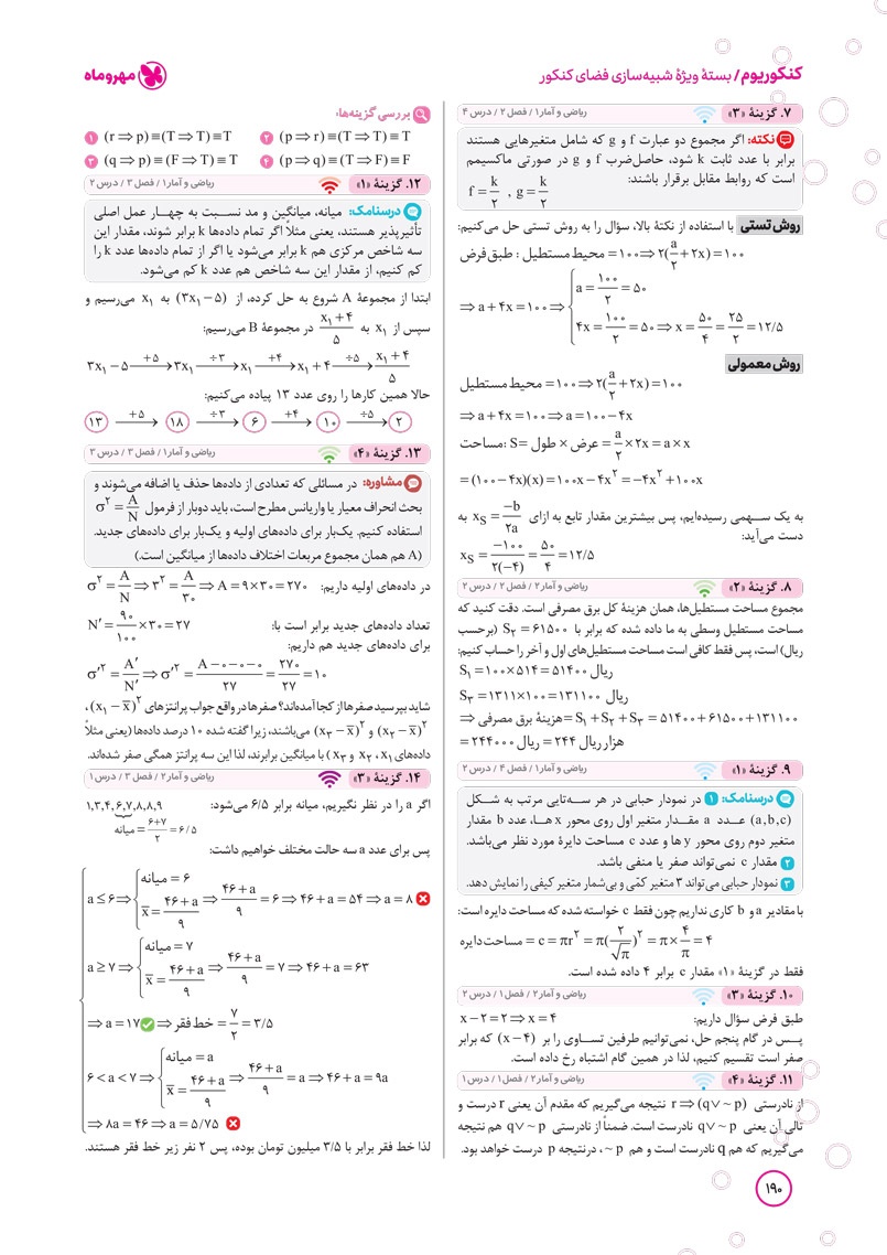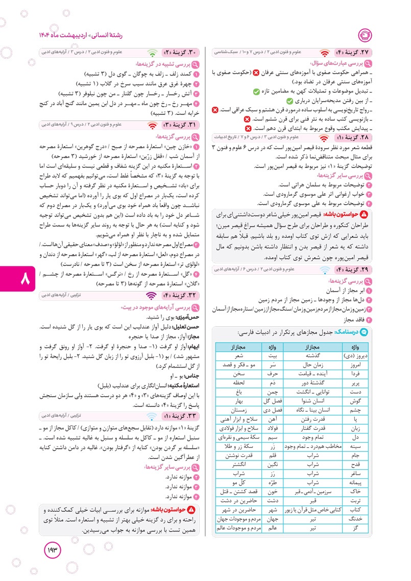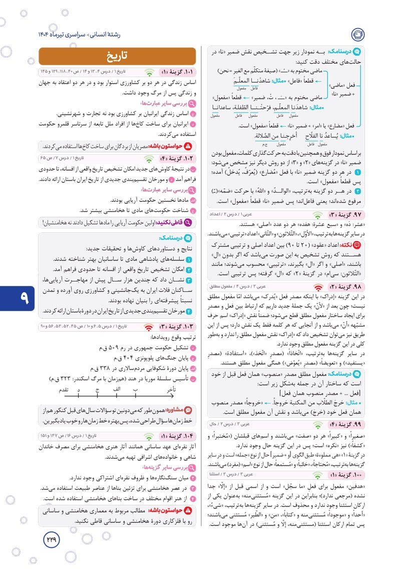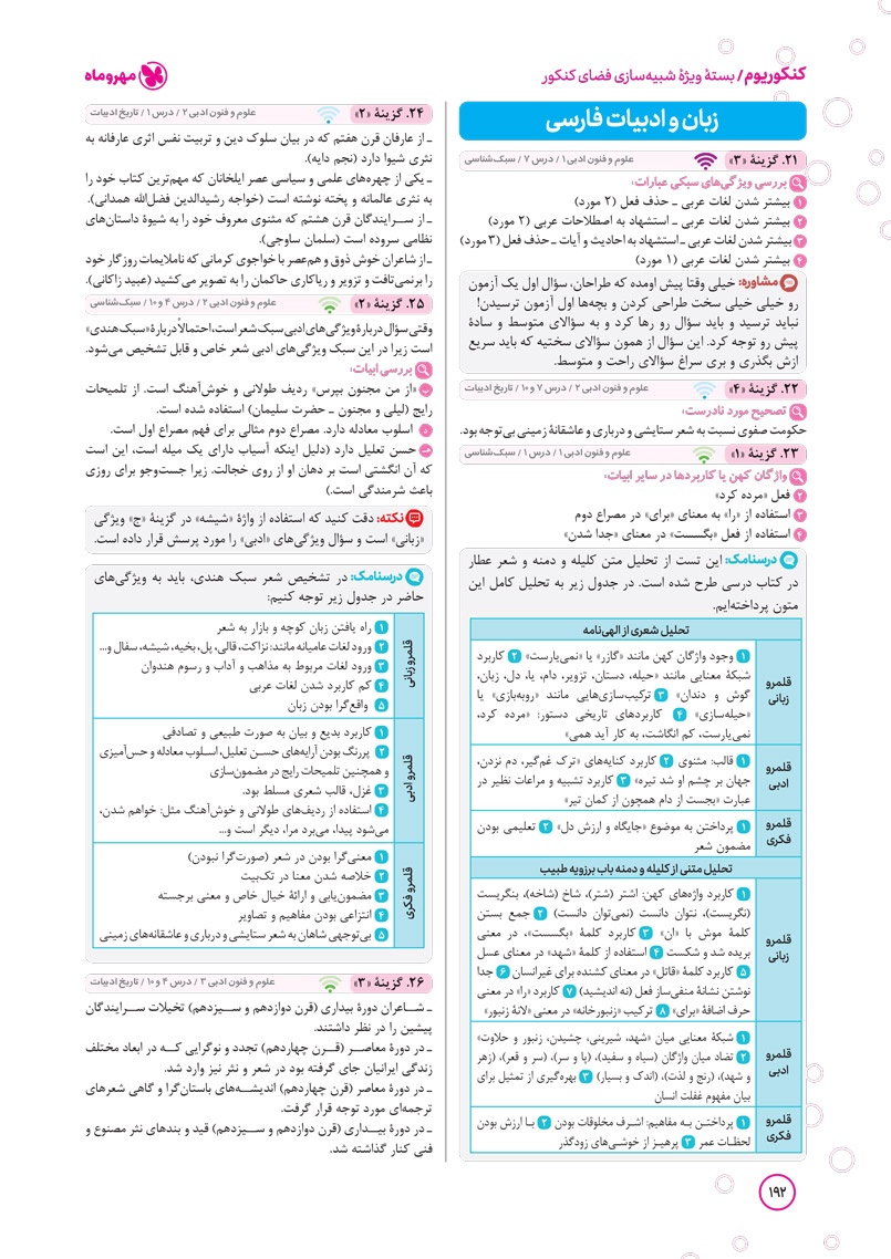 - پاسخنامهی تشریحی 13دوره کنکور سراسری داخل و خارج کشور و شبیه ساز کنکور - پاسخنامهی کاملا تشریحی با تحلیل گزینهها و راهحلهای مختلف - استفاده از کادرهای آموزشی کاربردی برای فهم بهتر مطالب - پاسخگویی به سوالات کنکور توسط برجسته ترین استادان کشور - دقیقترین پاسخ ها به همراه نکات آموزشی هر تست - نظارت کیفی توسط دپارتمانهای تالیف مهروماه و مرکز تخصصی علوم انسانی هومان