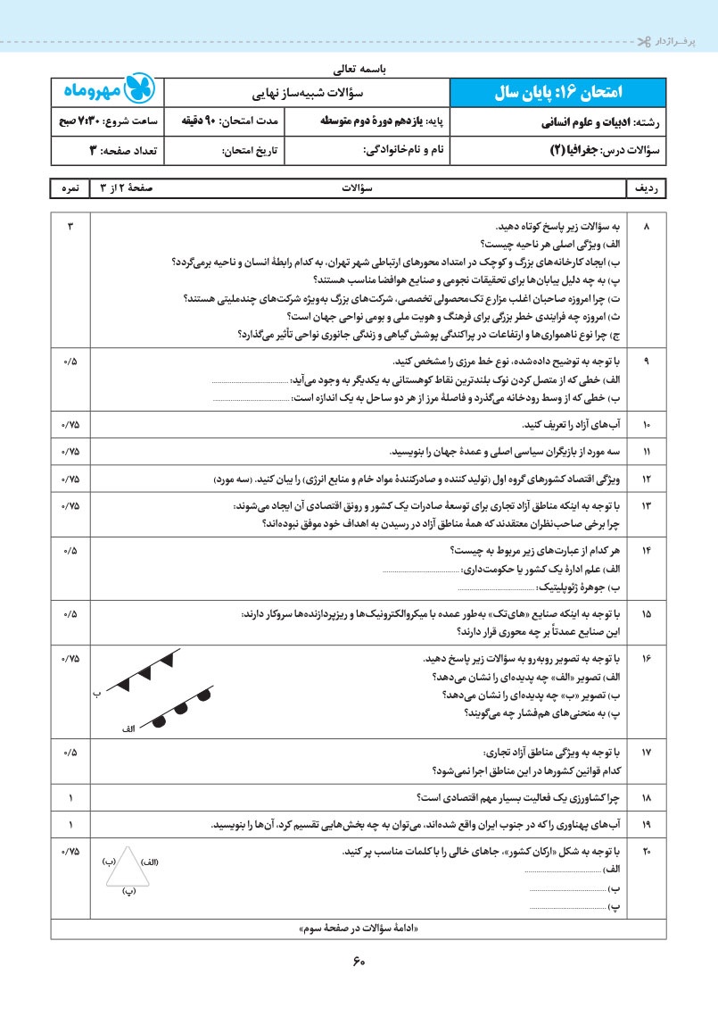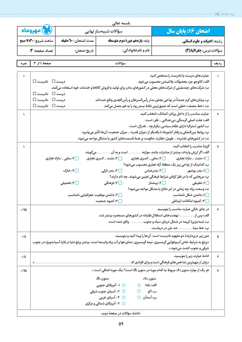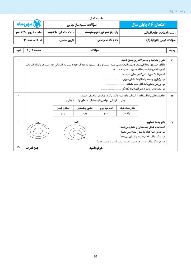 -شامل کامل ترین بانک سوالات امتحانات نهایی برگزار شده در سال های اخیر