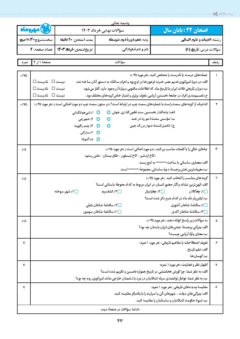 - کاملترین مرجع سوال امتحانی به همراه کلی نکات آموزشی