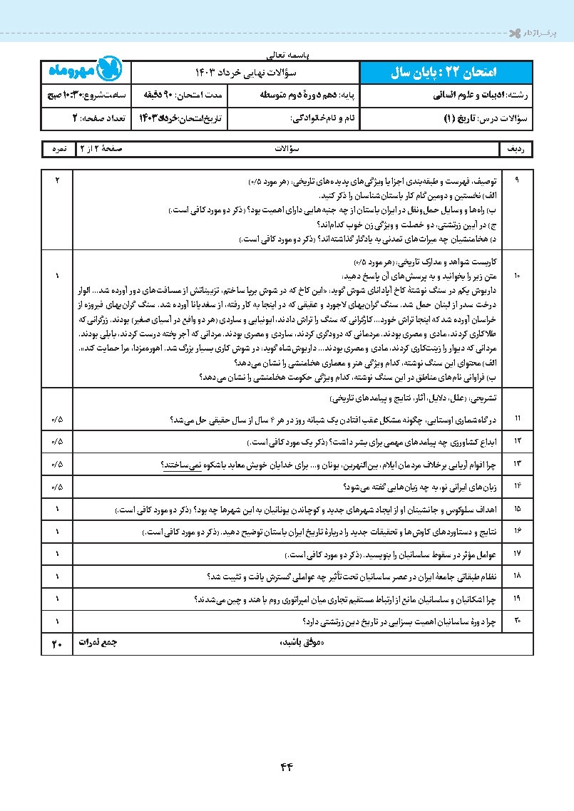- پیش بینی سوالات سطح بالای امتحان با سوالات بیست ساز 20+