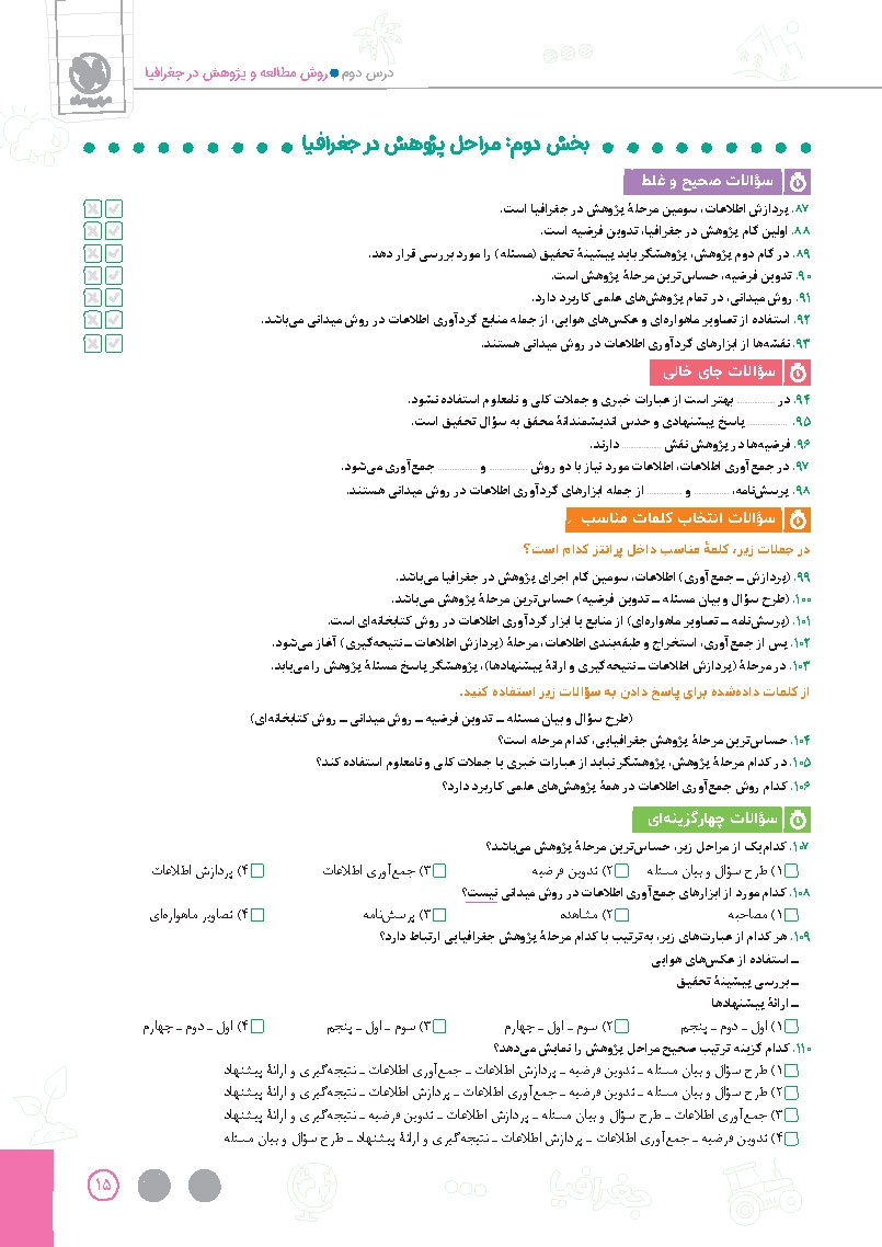 - طبقه بندی سوالات به صورت درس به درس و بخش بندی هر درس به قسمت های کاربردی تر