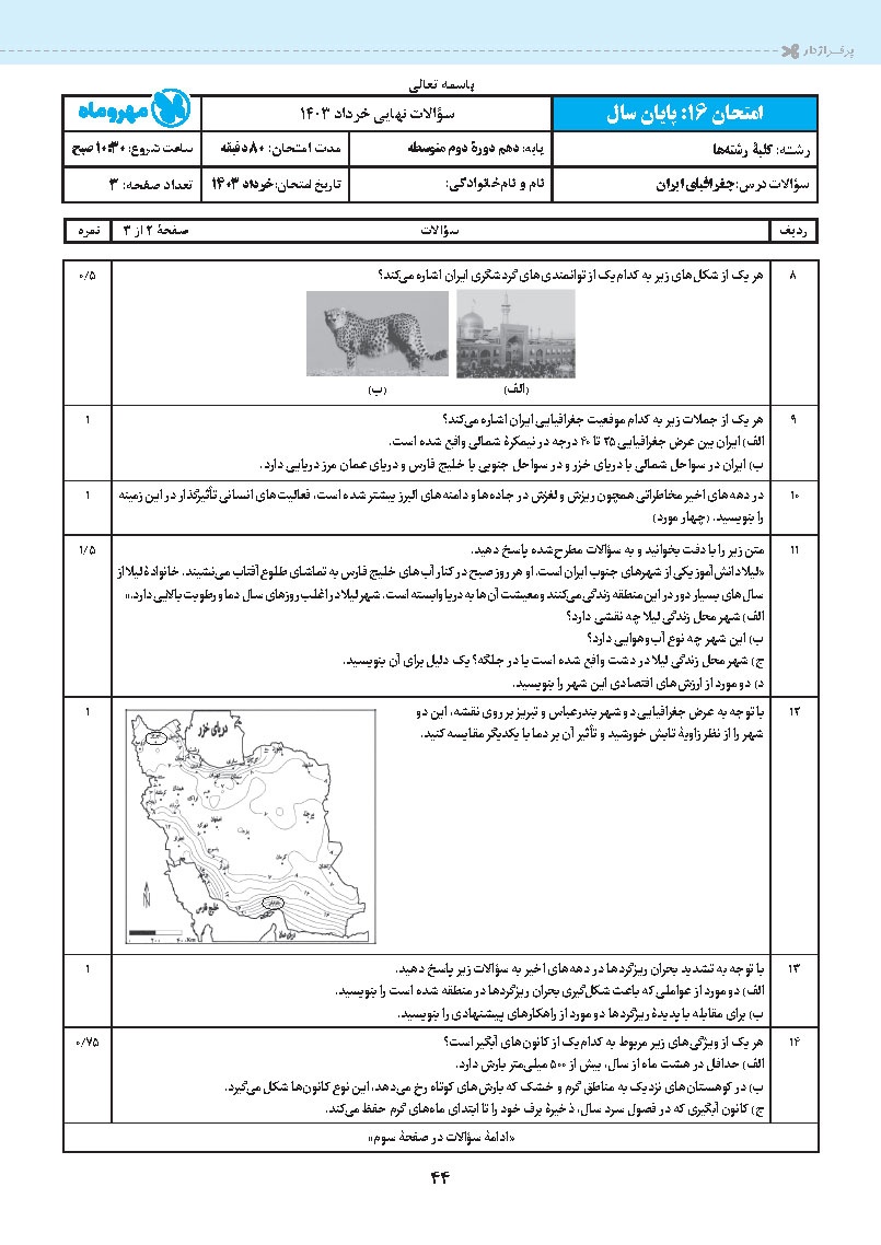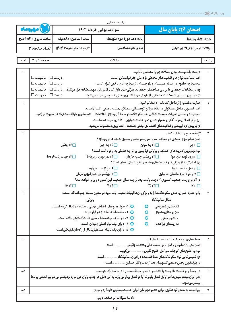 - کامل ترین مرجع سوالات امتحانی و پایانی