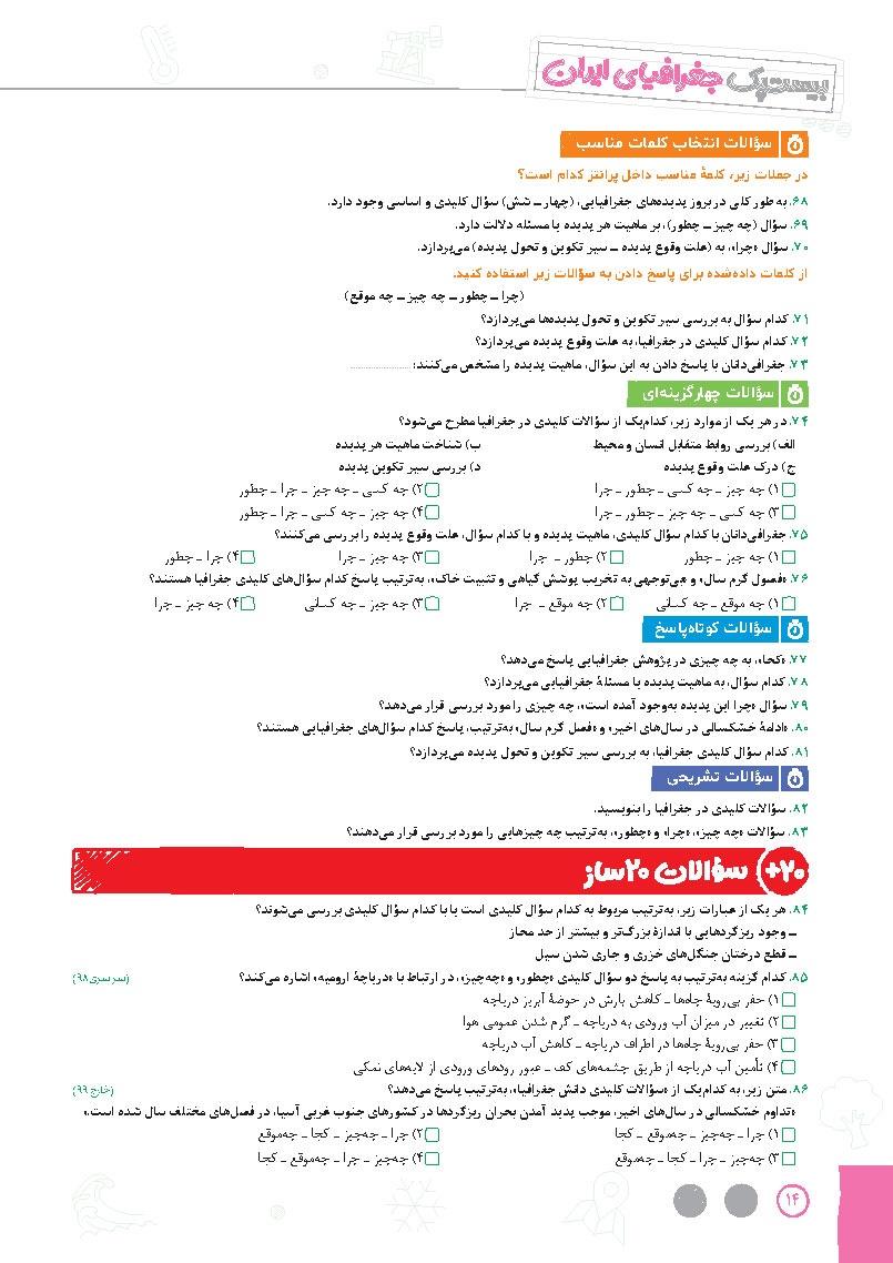 - پوشش سوالات سطح بالای امتحانی با سوالات بیست ساز