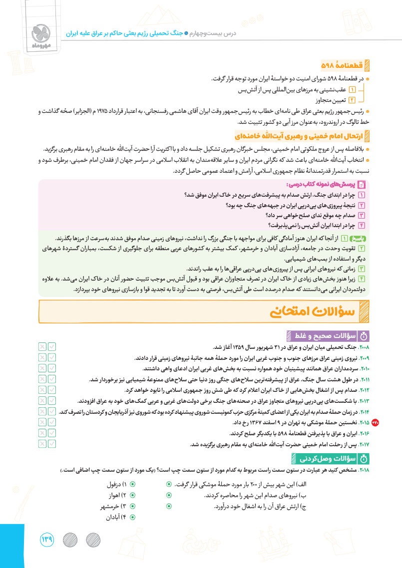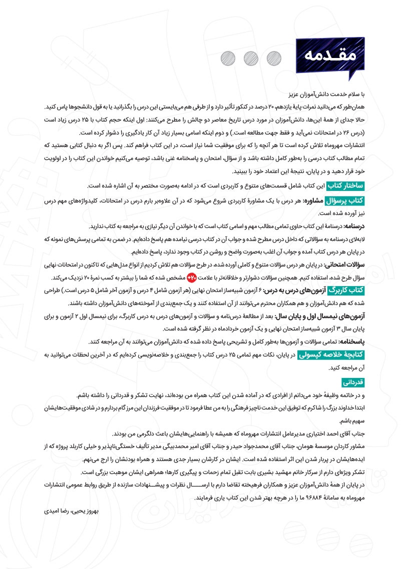 ویژگی های کتاب پرسوال:- ارائه مشاوره در خصوص روش مطالعه به سبک امتحان نهایی