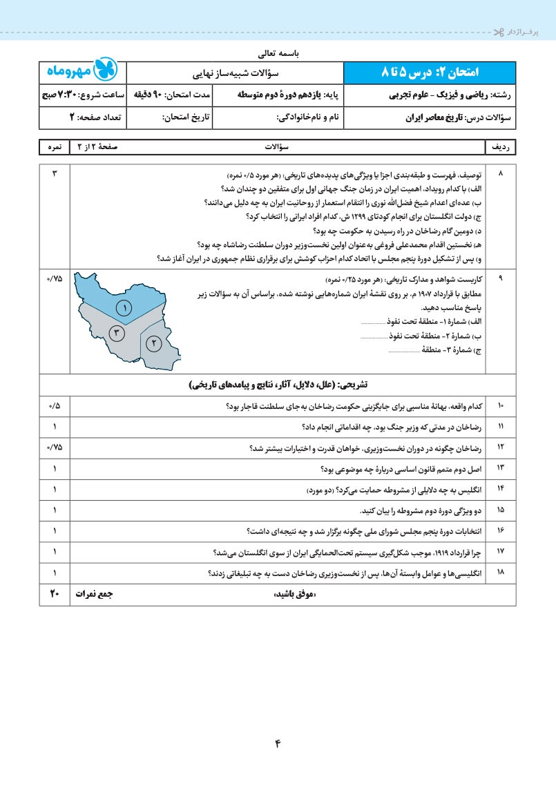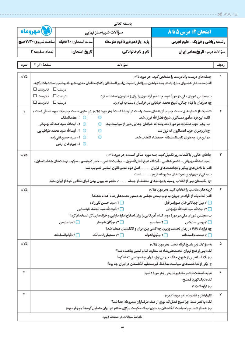 - 12 کاربرگ امتحانی
