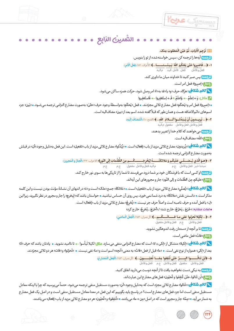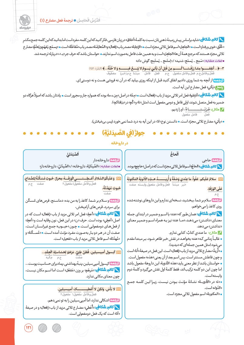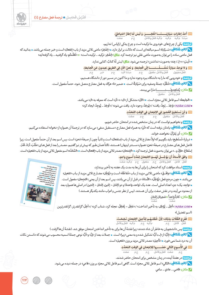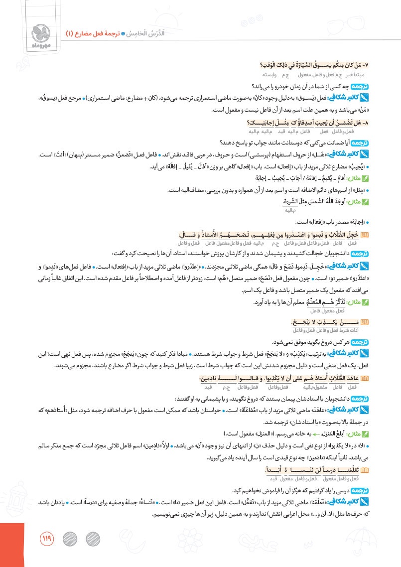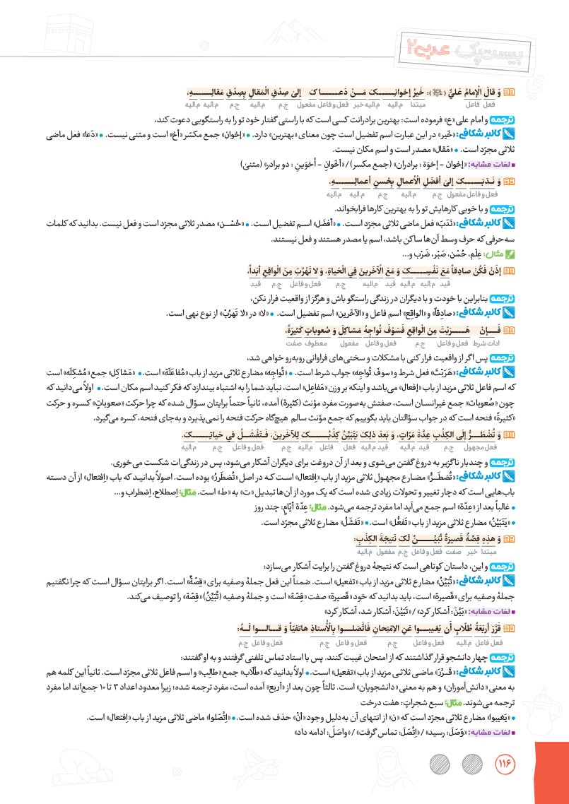 - بررسی نقش تمام کلمات کتاب درسی و تحلیل صرفی آن ها به شکل خط به خط