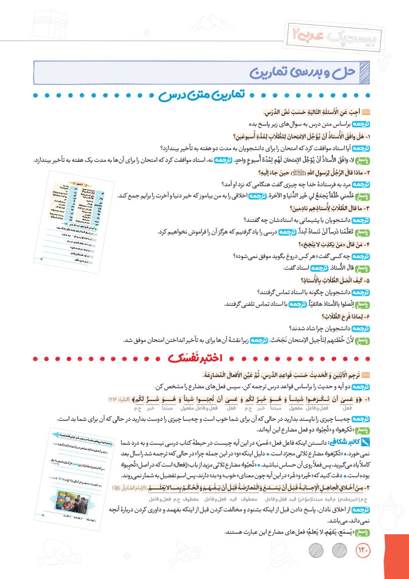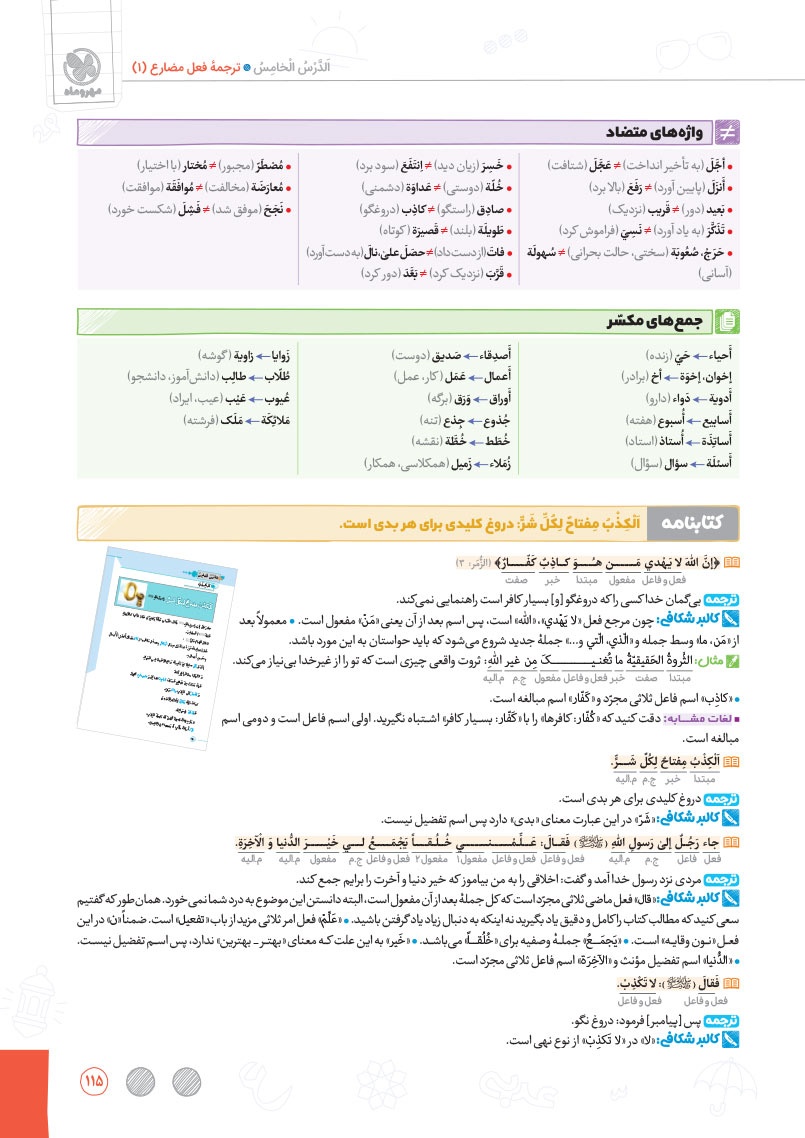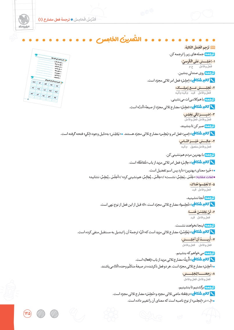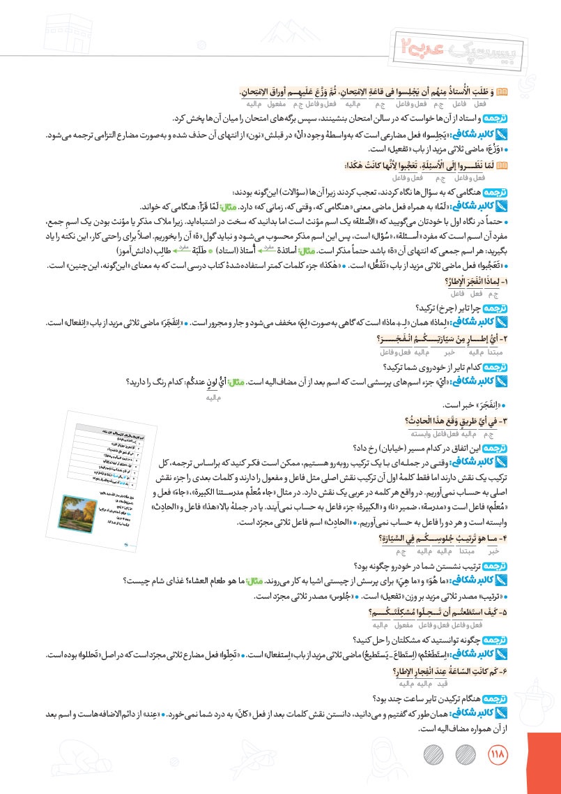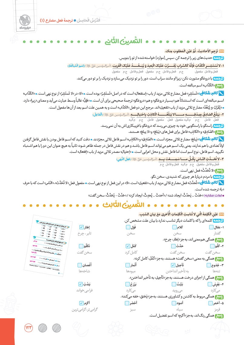 - بررسی نقش تمام کلمات کتاب درسی و تحلیل صرفی آن ها به شکل خط به خط