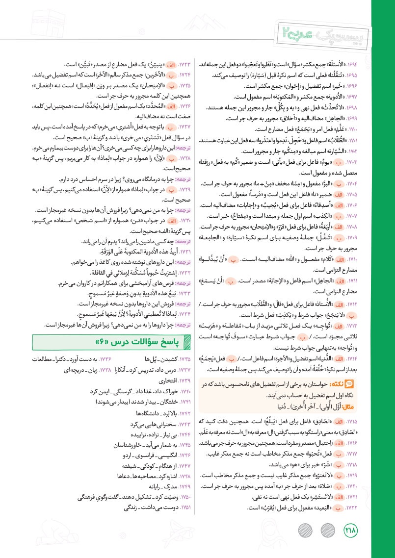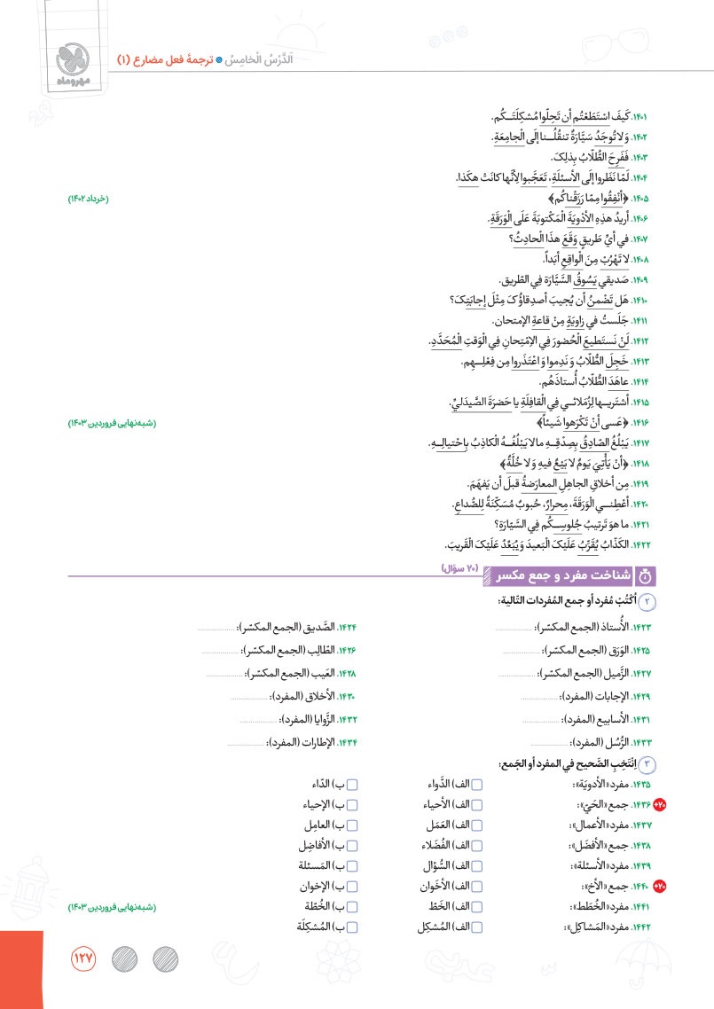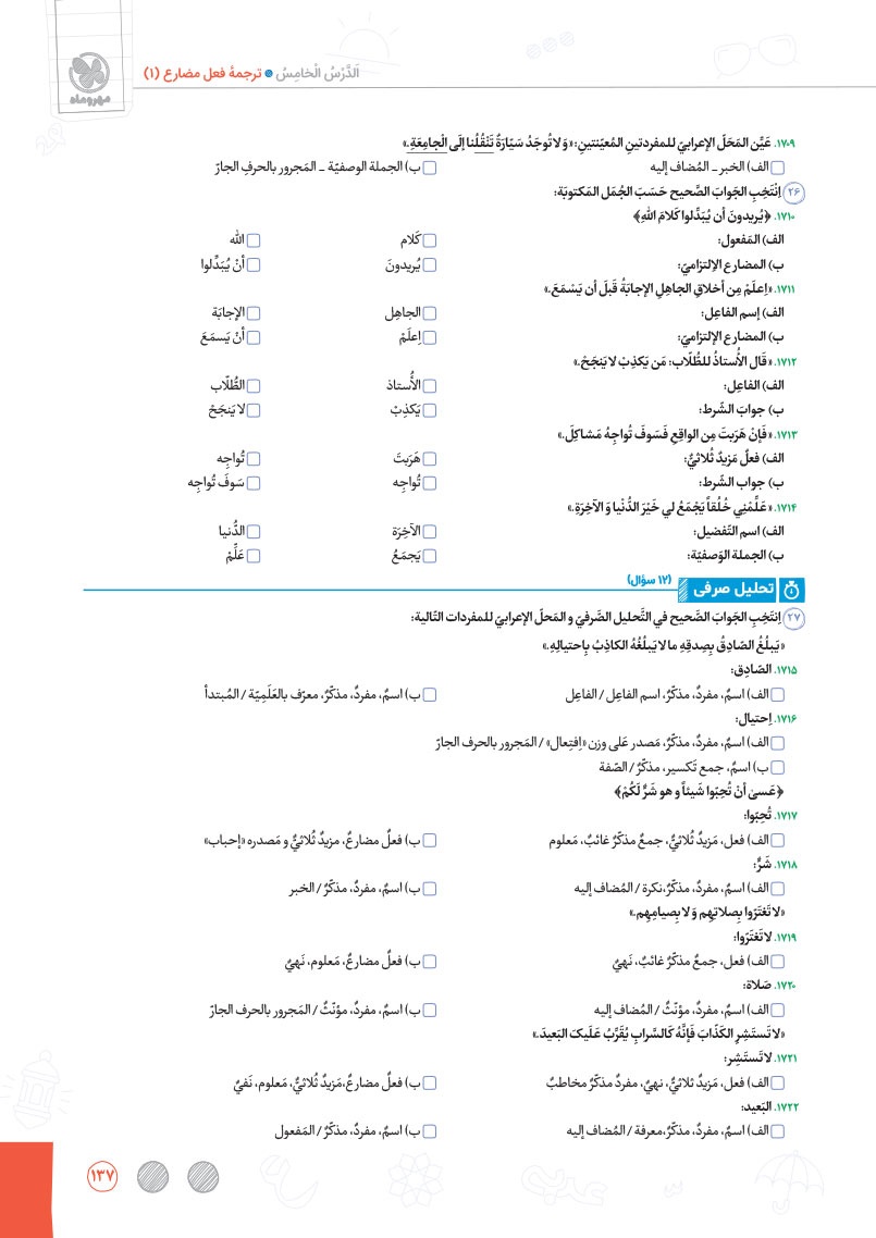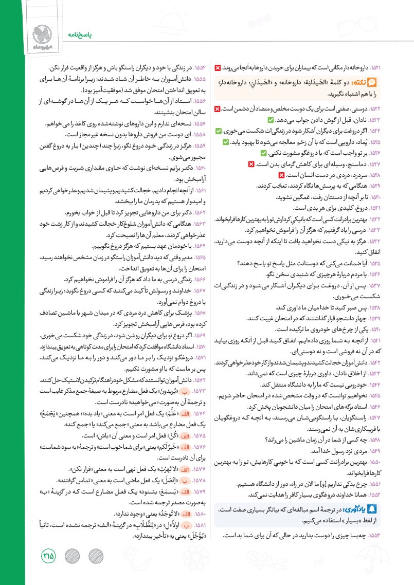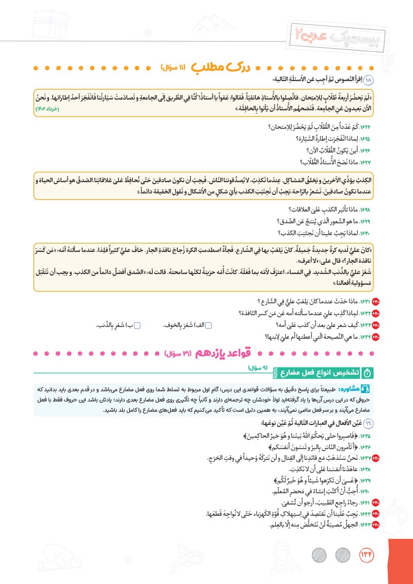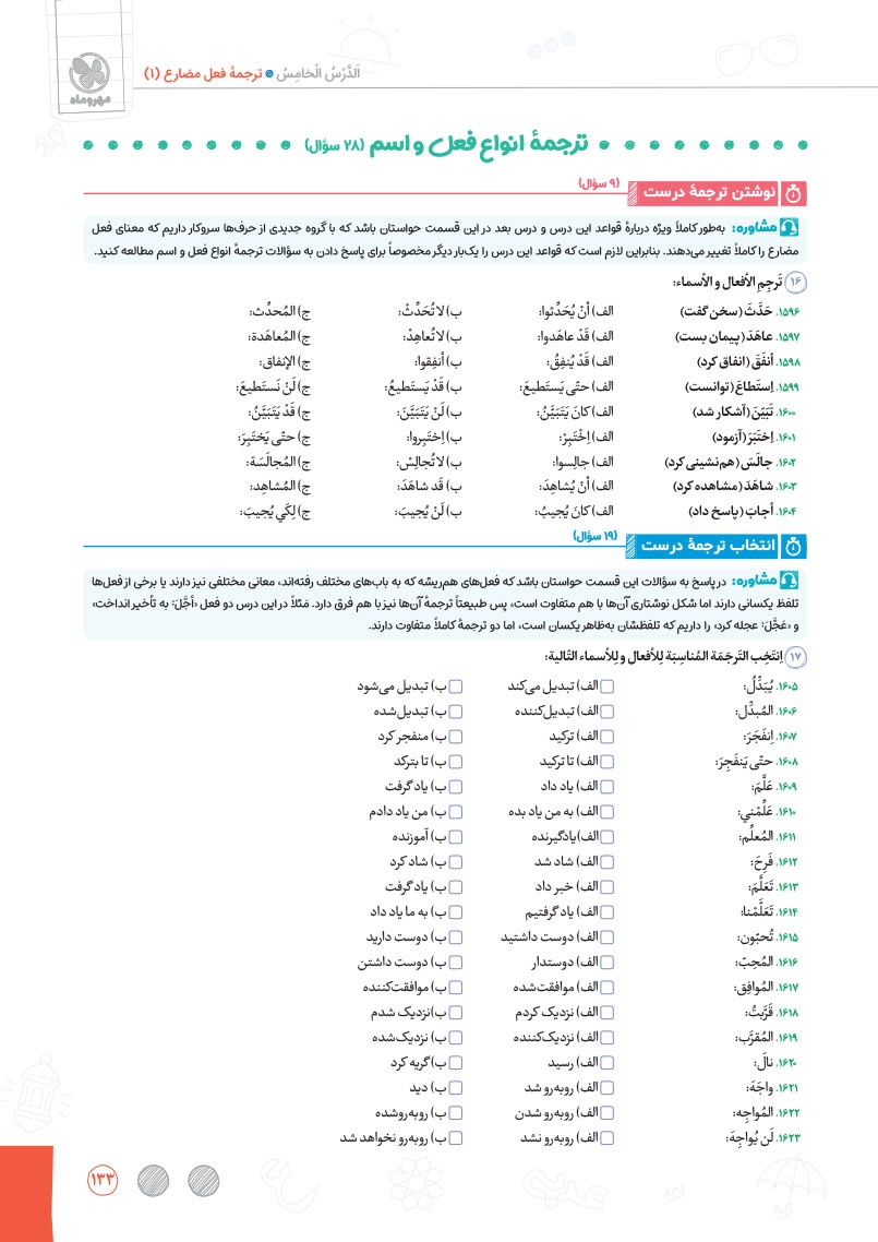 - بررسی نقش تمام کلمات کتاب درسی و تحلیل صرفی آن ها به شکل خط به خط