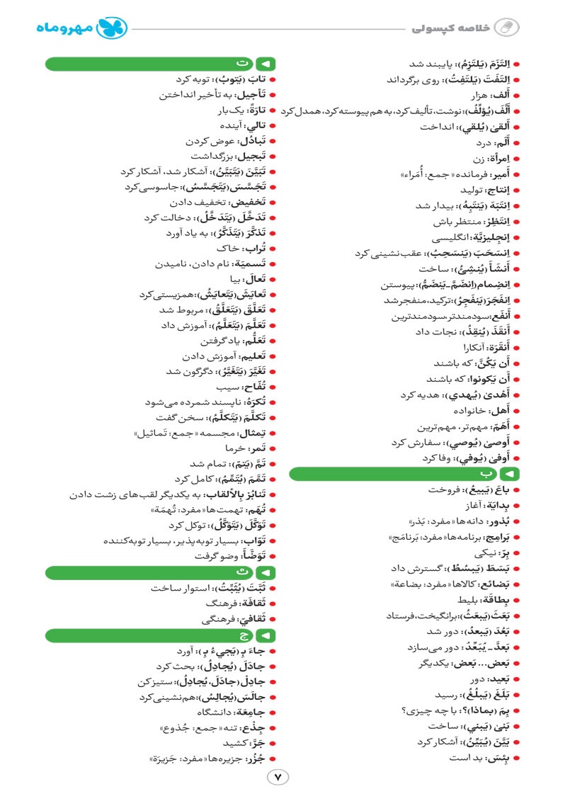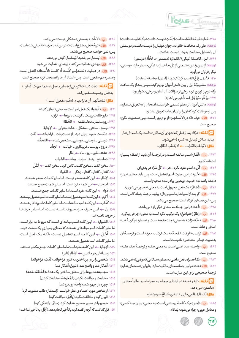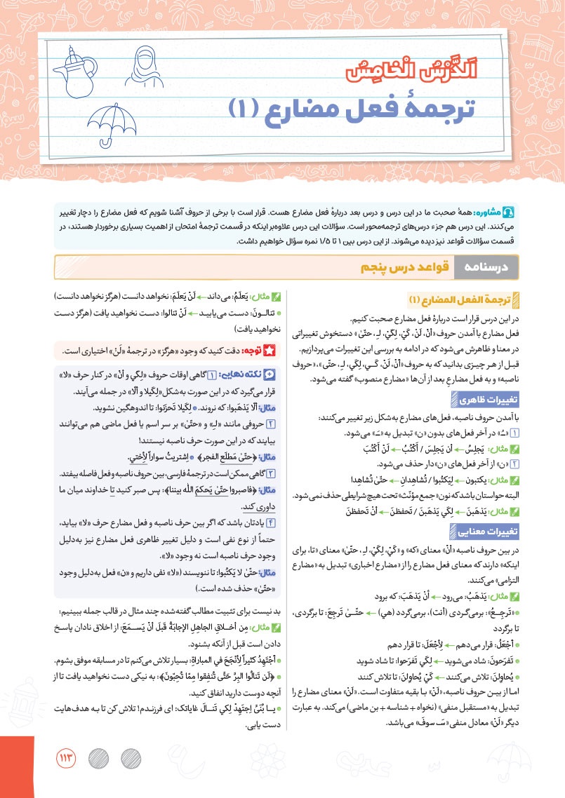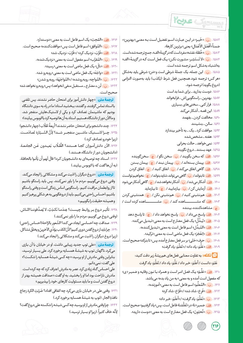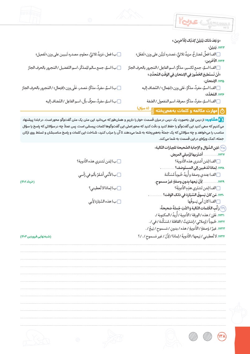 - بررسی نقش تمام کلمات کتاب درسی و تحلیل صرفی آن ها به شکل خط به خط