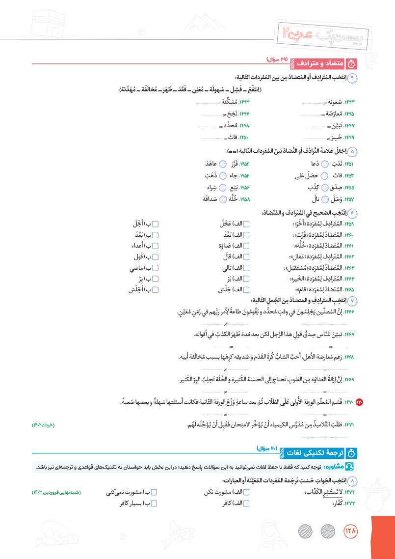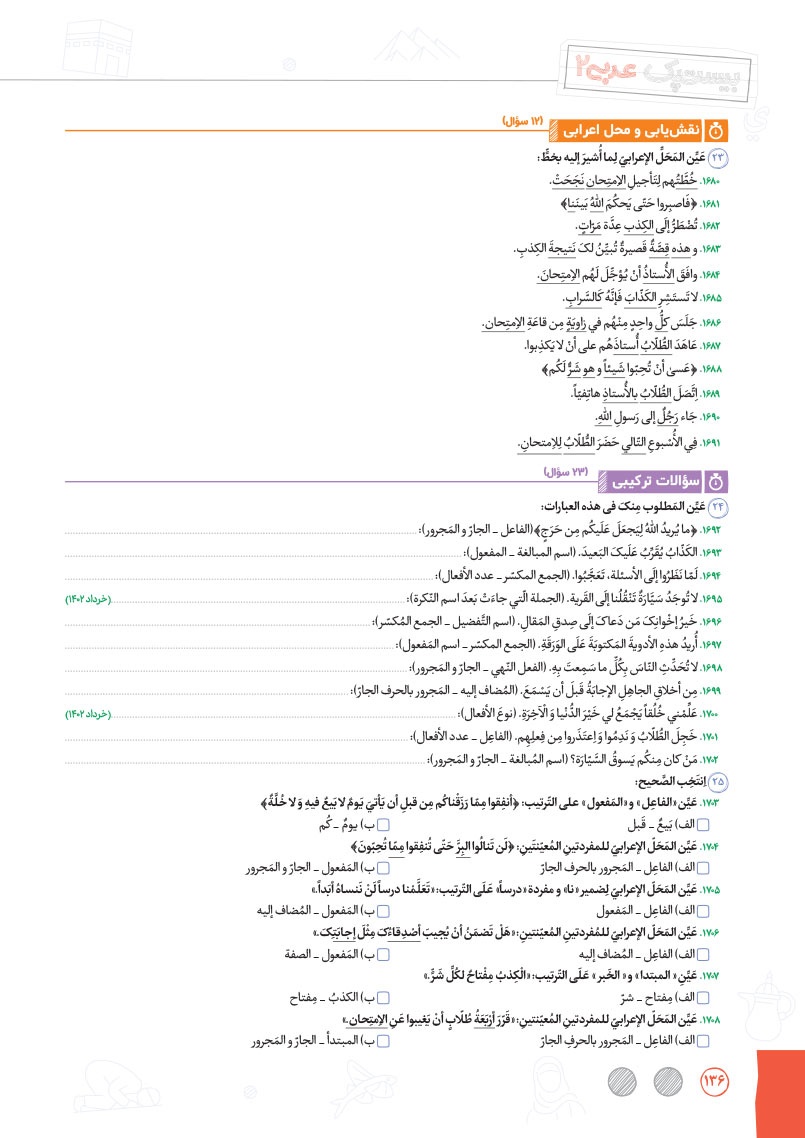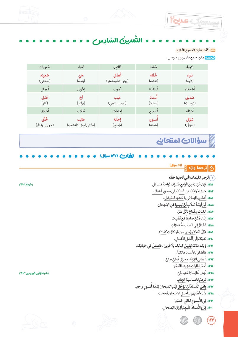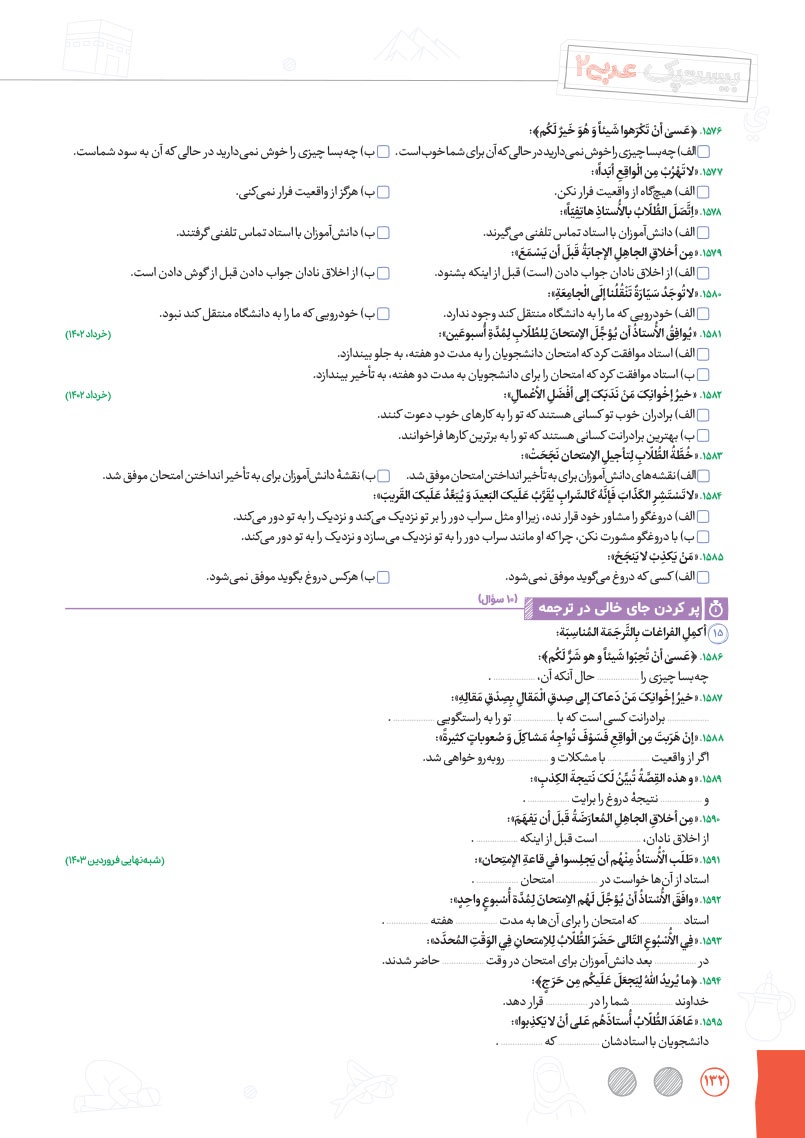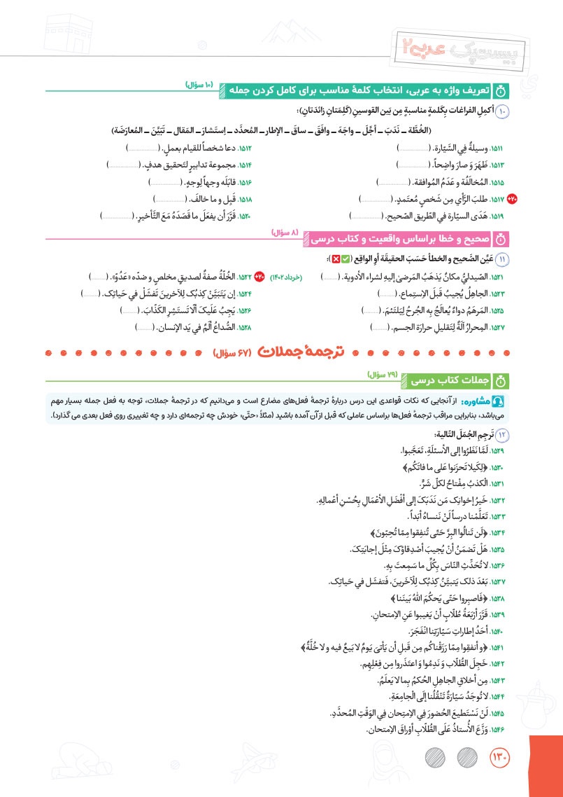 - طبقهبندی دقیق و نوآورانه سوالات به صورت درس به درس و سطر به سطر در موضوعات واژگان، ترجمهی درک مطلب، قواعد و تحلیل صرفی