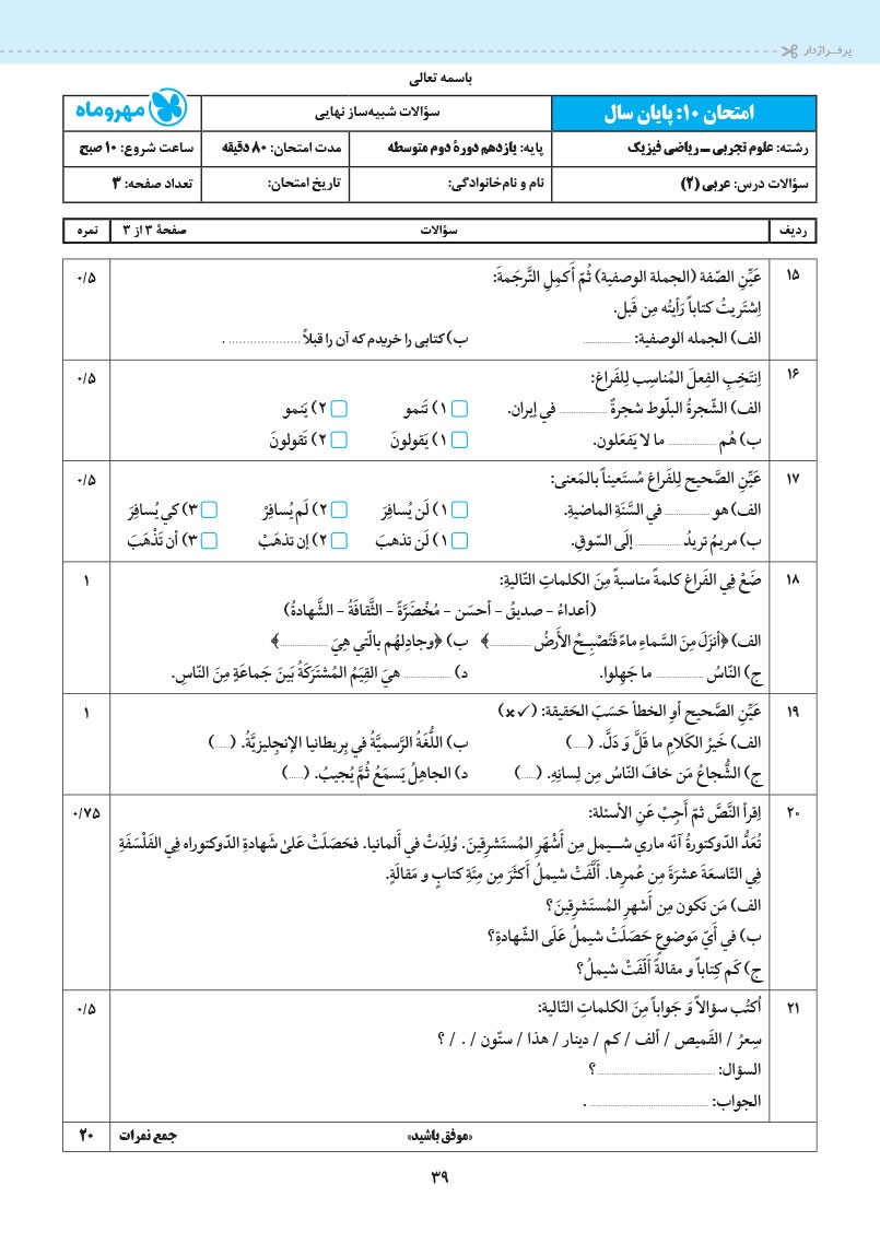 در نهایت با حل سوالات آزمون های نهایی اخیر به آمادگی کامل خواهید رسید.