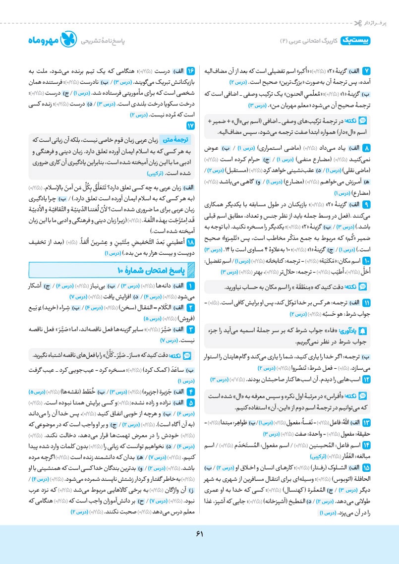 - پاسخنامهی واقعا تشریحی به همراه نکات امتحانی و جمعبندی