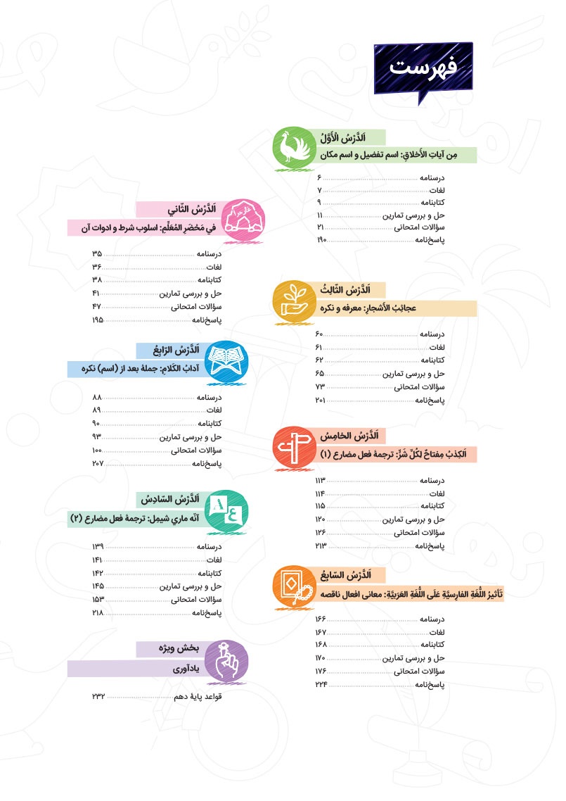 - دارای ضمیمه بخش ویژه برای مرور قواعد و ترجمه پایه دهم