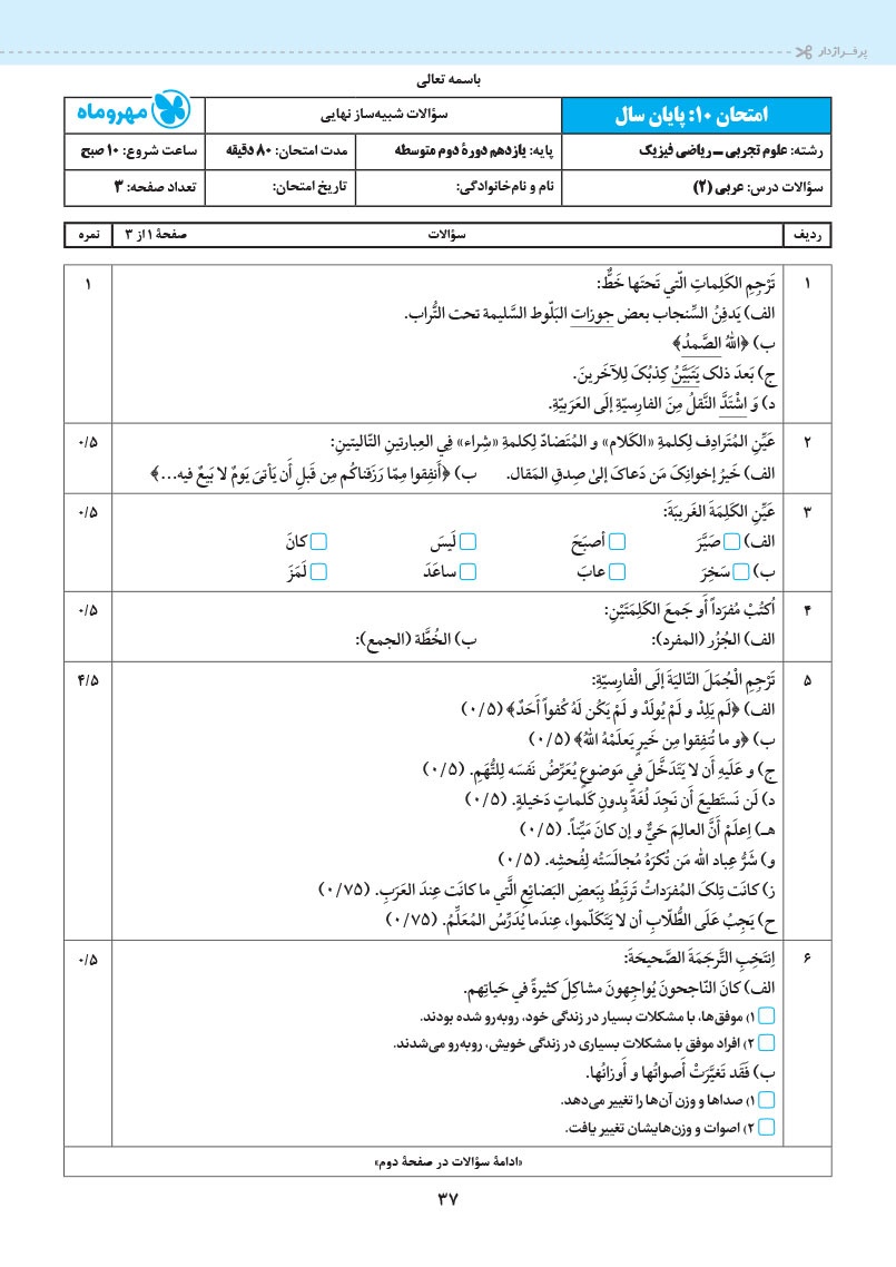 سوالات امتحان های این بسته، براساس آخرین رویکردهای امتحانات نهایی و کاملا مشابه برگه های امتحانی و با رعایت جدیدترین بارم بندی طراحی شده است.