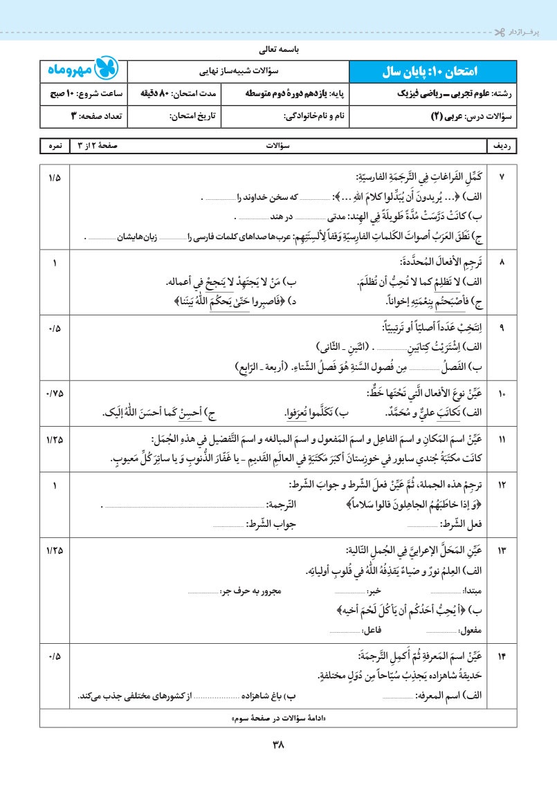 - 14 کاربرگ امتحانی