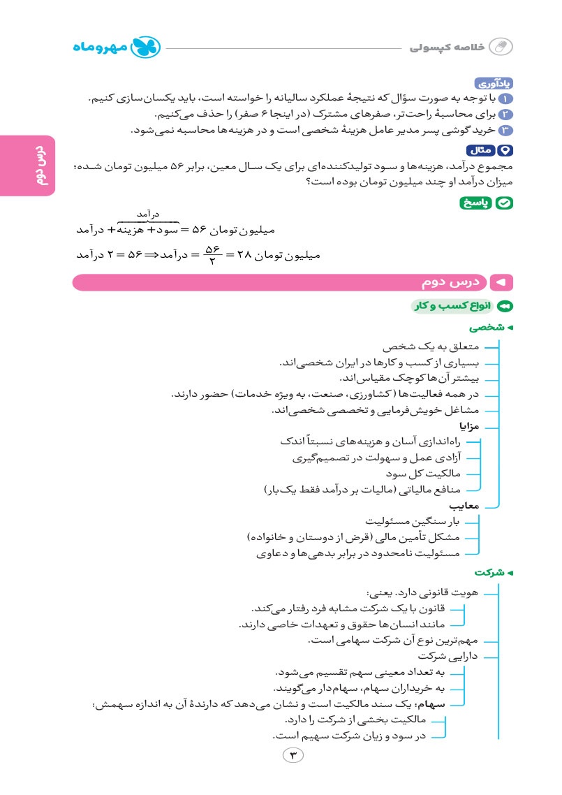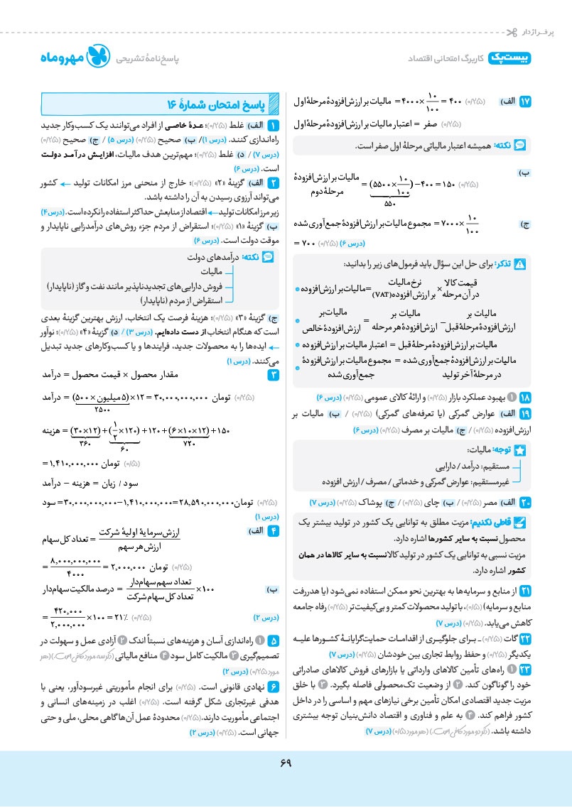 شما میتوانید با استفاده از کادرهای آموزشی داخل پاسخ نامه رفع اشکال کنید و از خلاصه کپسولی برای مرور مطالب مهم استفاده نمایید.