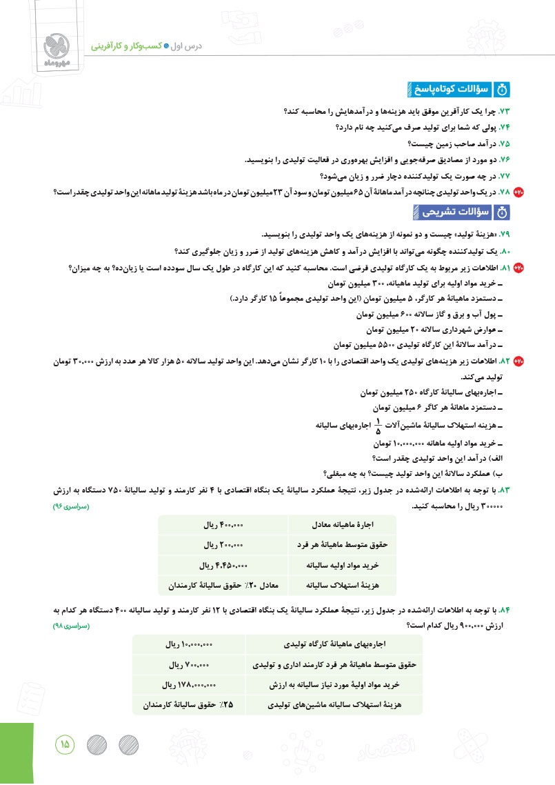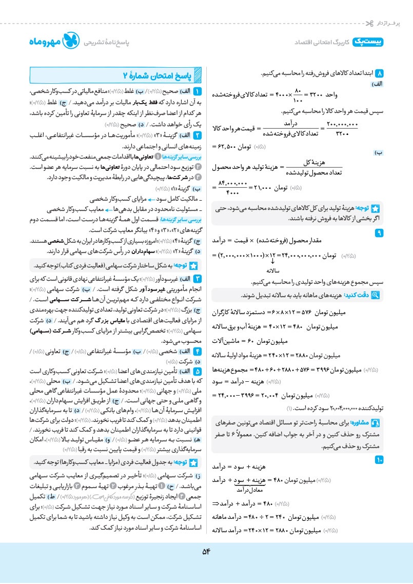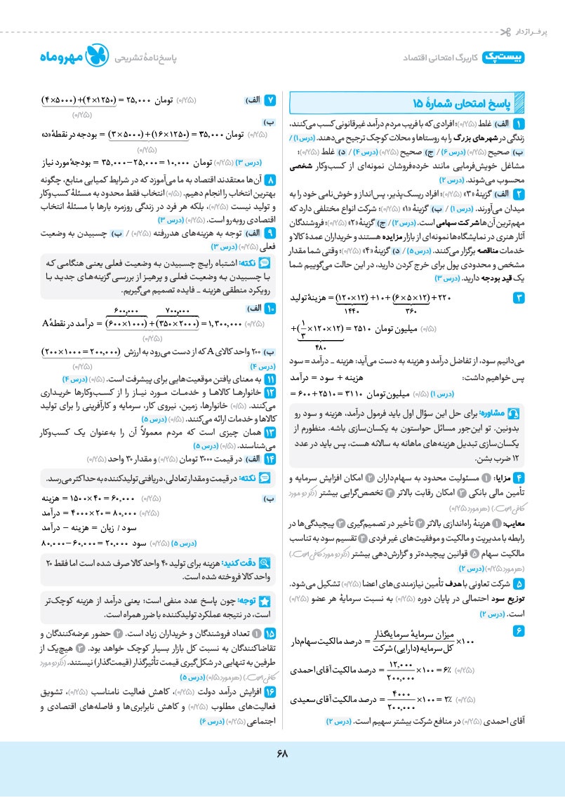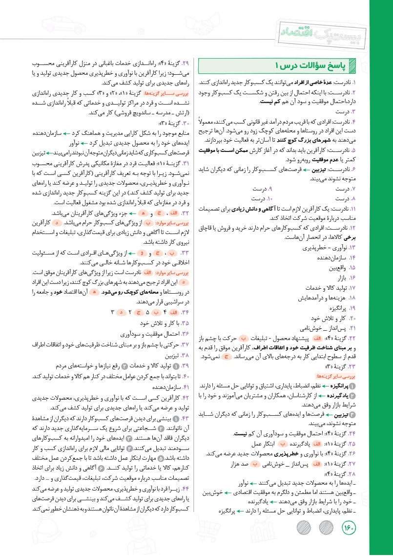- پوشش کامل پاسخ تمام فعالیت ها و موضوعات مهم امتحانی