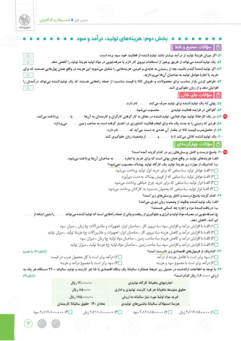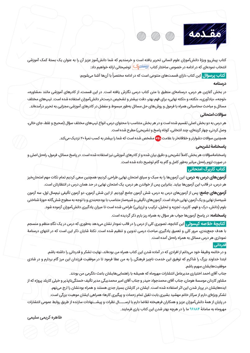 ویژگی های کتاب پرسوال:- موشکافی و تحلیل کامل متن کتاب درسی با بیان نکات مهم امتحانی