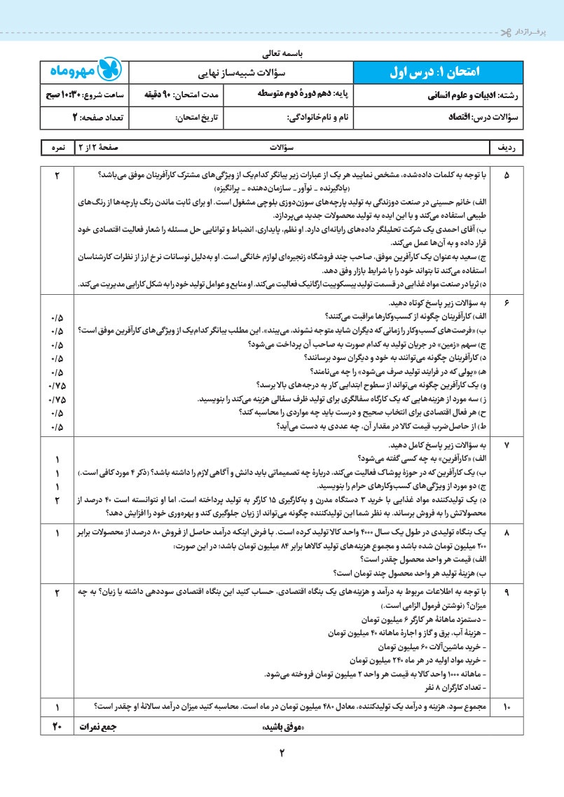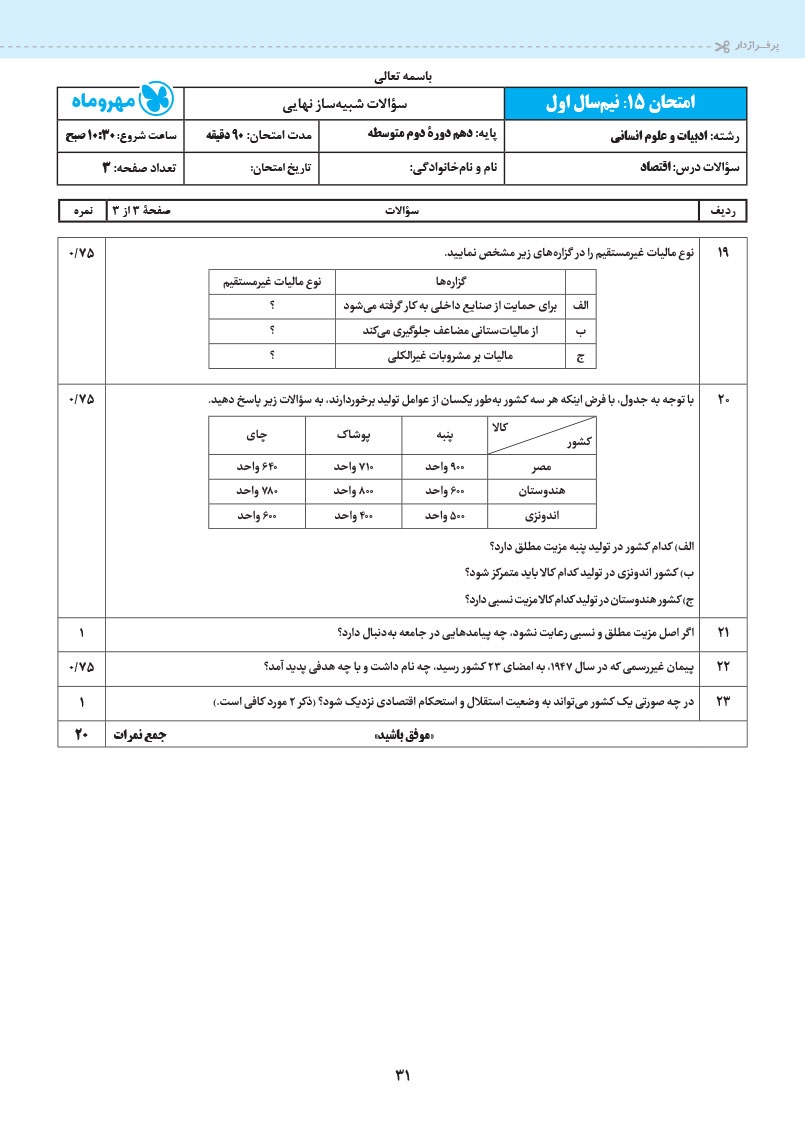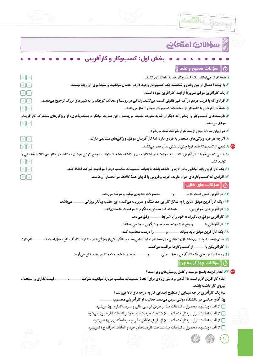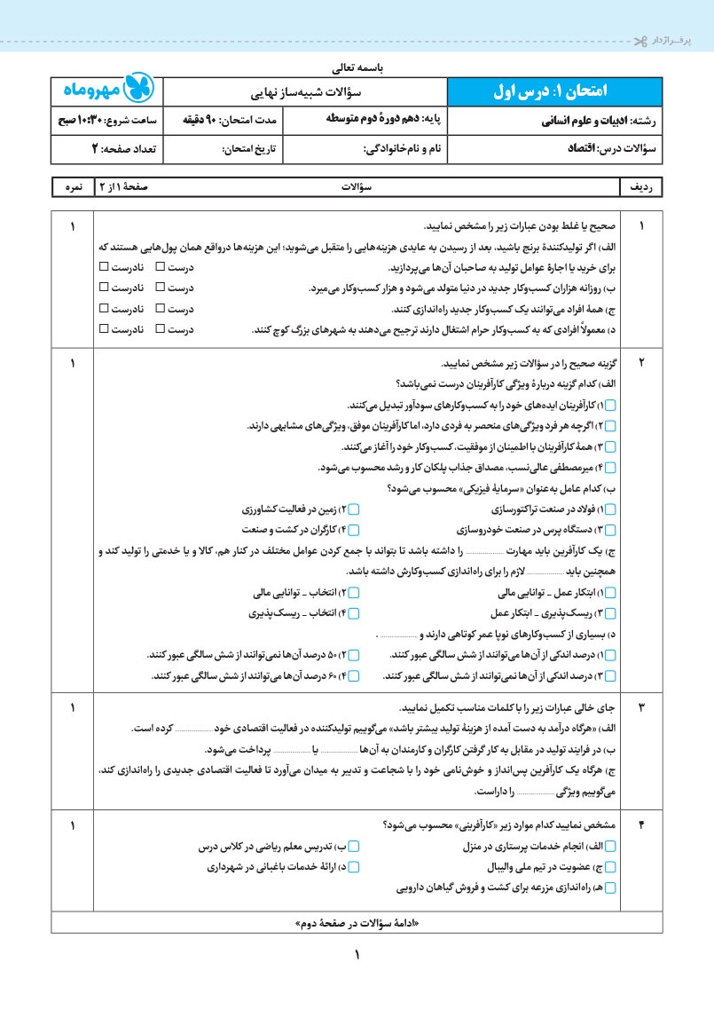 سوالات امتحان های این بسته، براساس آخرین رویکردهای امتحانات نهایی و کاملا مشابه برگه های امتحانی و با رعایت جدیدترین بارم بندی طراحی شده است.