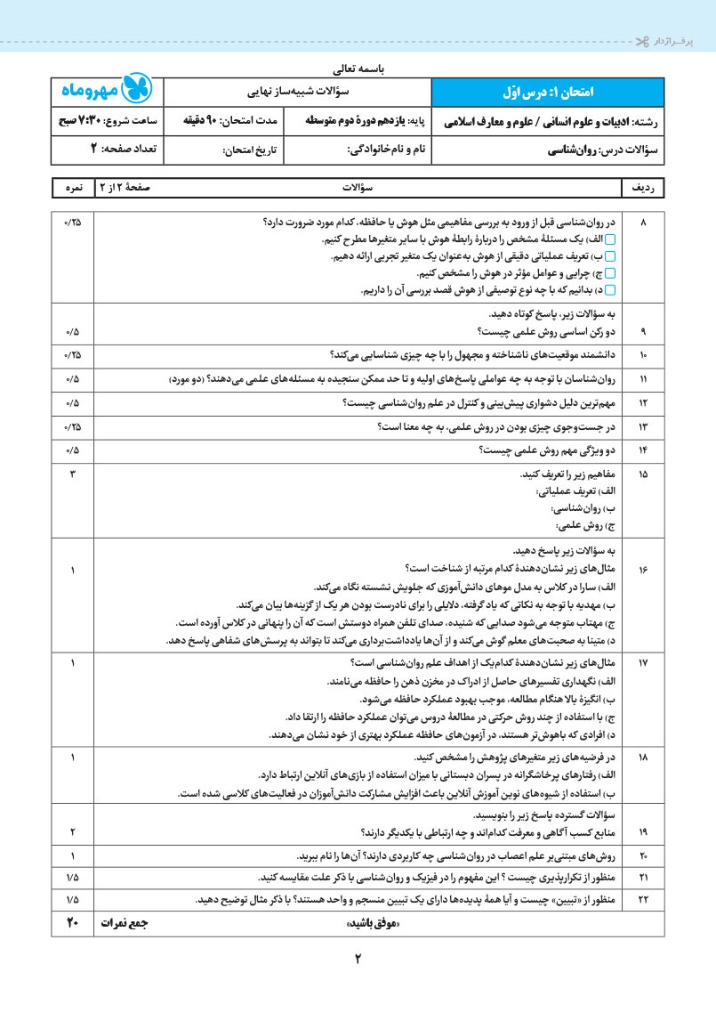 به امید موفقیت شما در همه امتحانات.