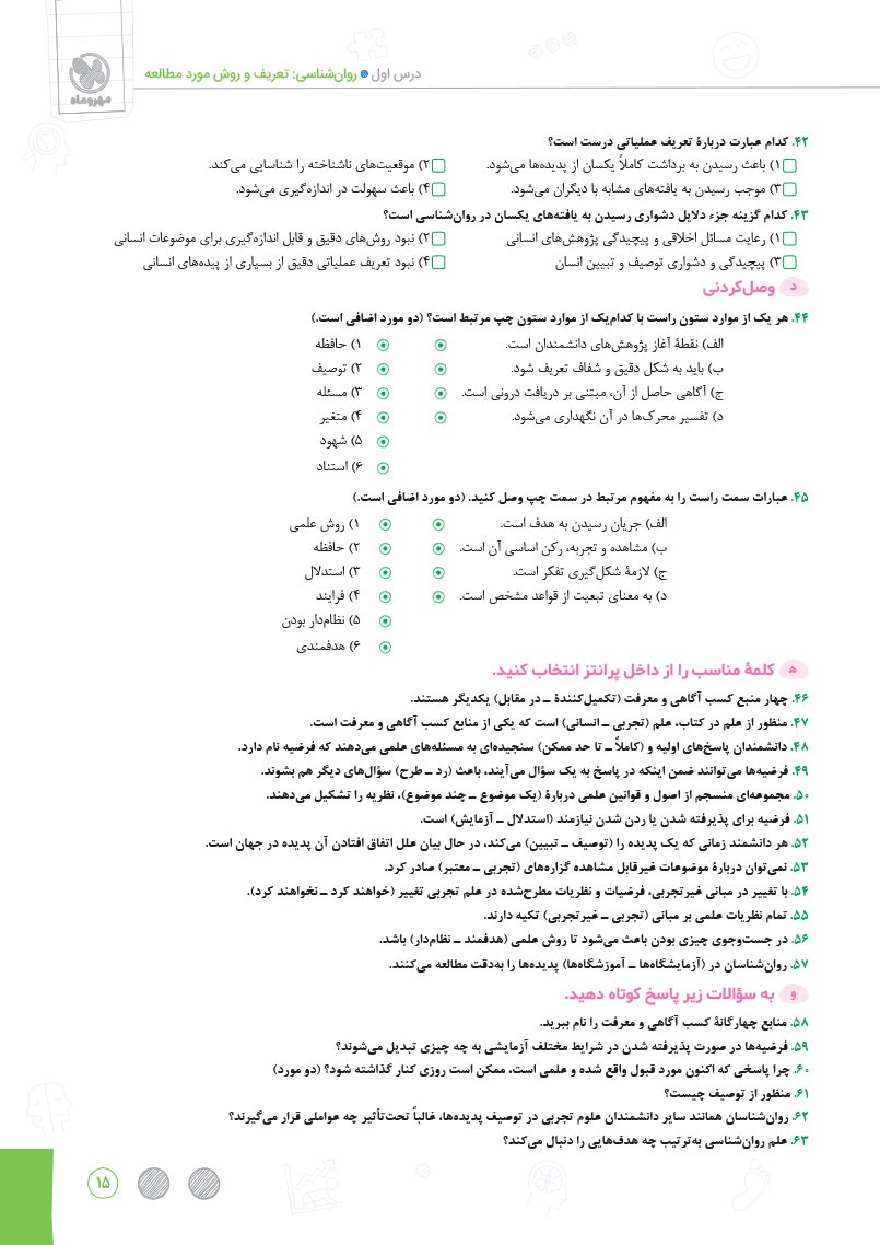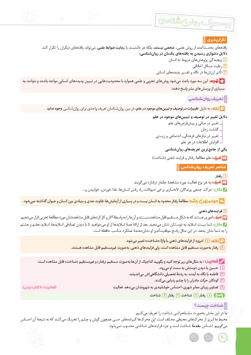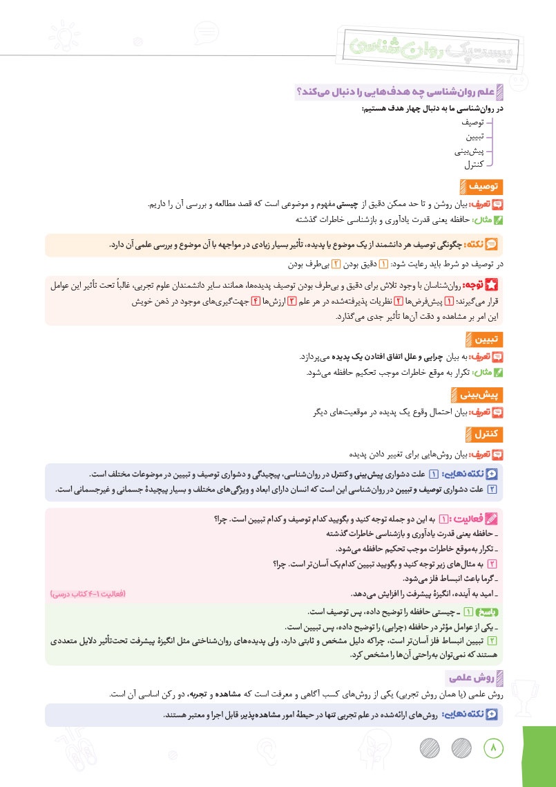 - پاسخ به تمامی سوالات متن و فعالیت های کتاب درسی