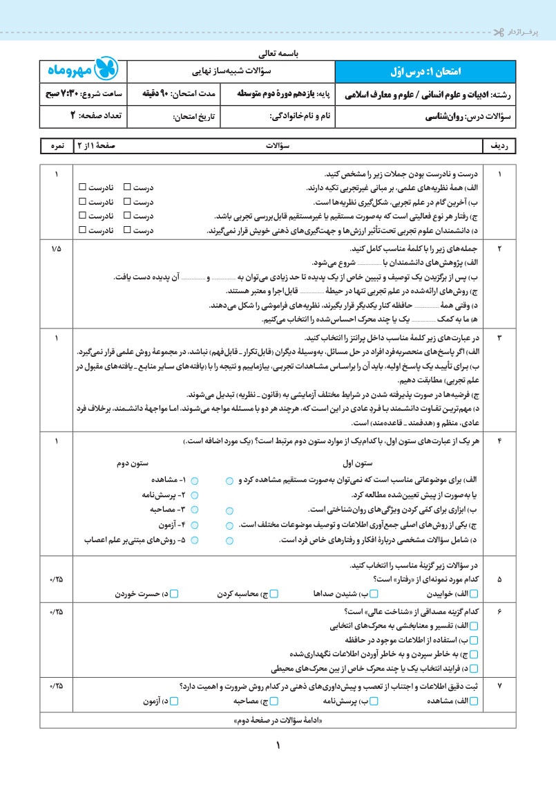 2. امتحان های شبیه ساز نیم سال اول