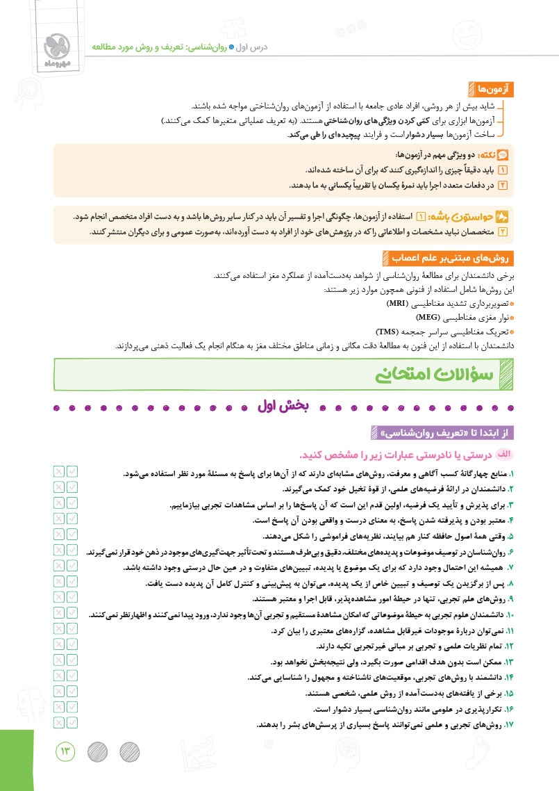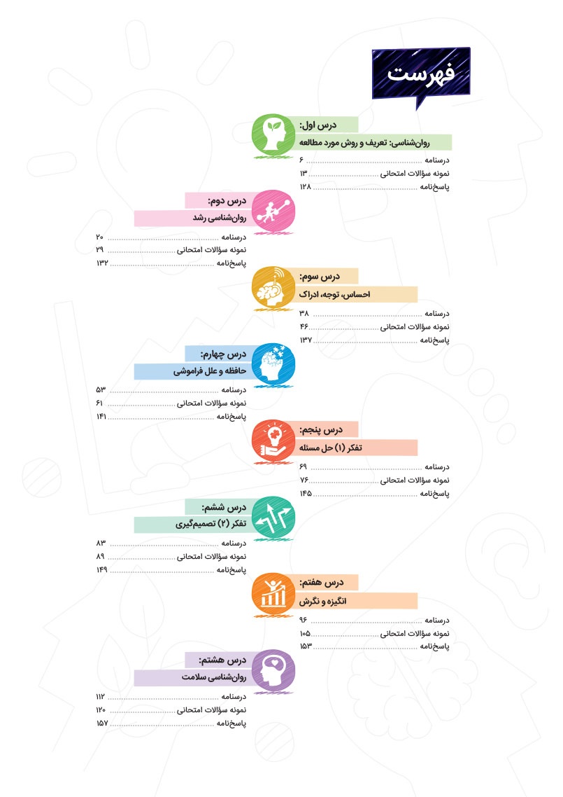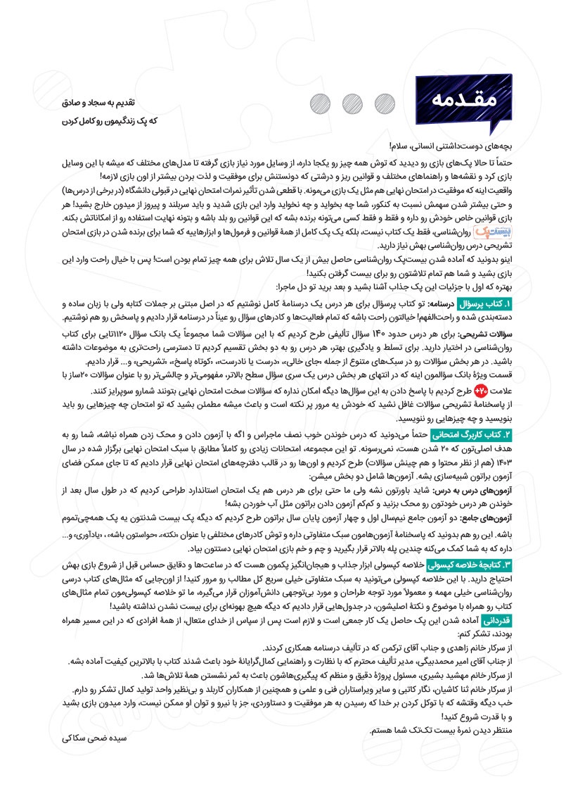 ویژگی های کتاب پرسوال:- ارائه مشاوره در خصوص روش مطالعه به سبک امتحان نهایی