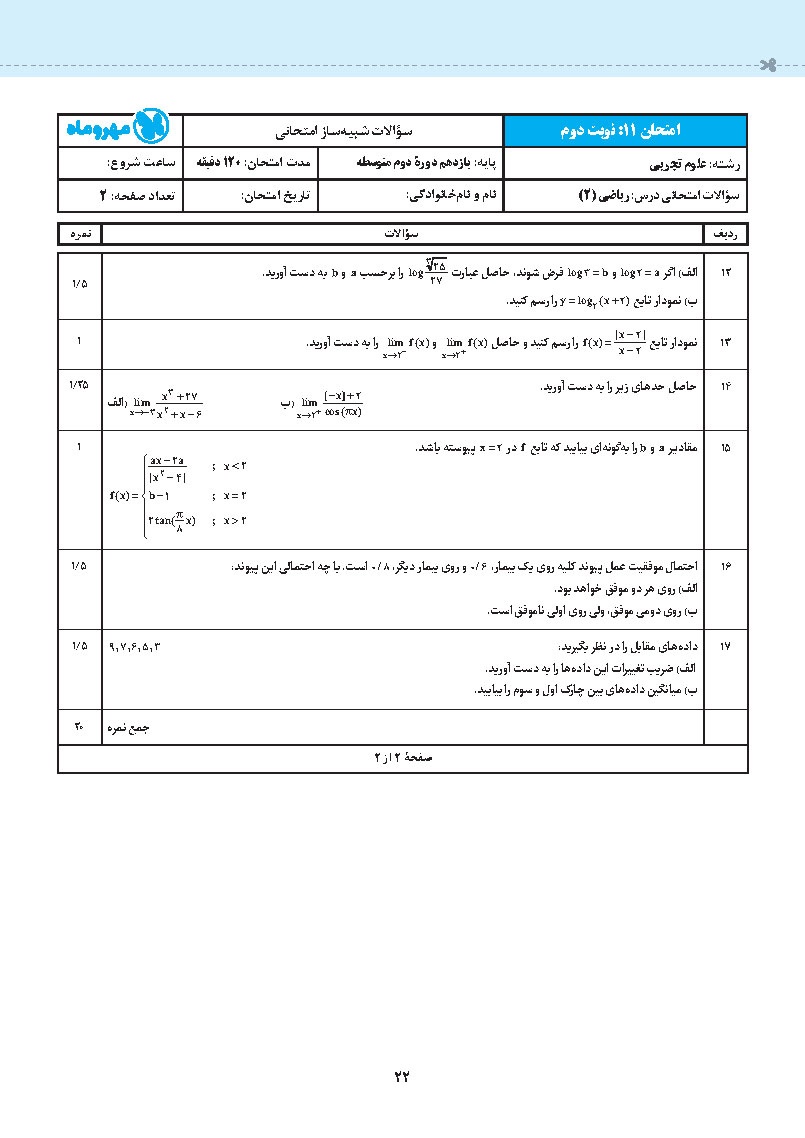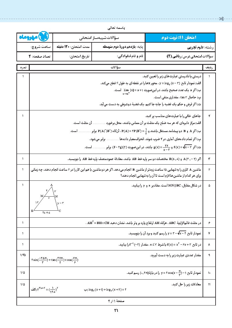 در نهایت با حل سوالات دو آزمون نهایی اخیر به آمادگی کامل خواهید رسید.