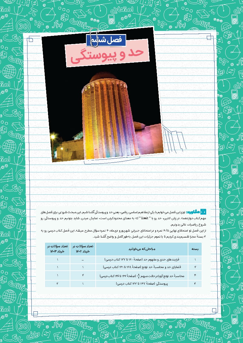 امتحان های این بسته، براساس آخرین رویکردهای طراحان در امتحانات نهایی و با رعایت جدیدترین بارم بندی اعلام شده توسط دفتر برنامه ریزی و تالیف آموزش و پرورش طراحی شده است