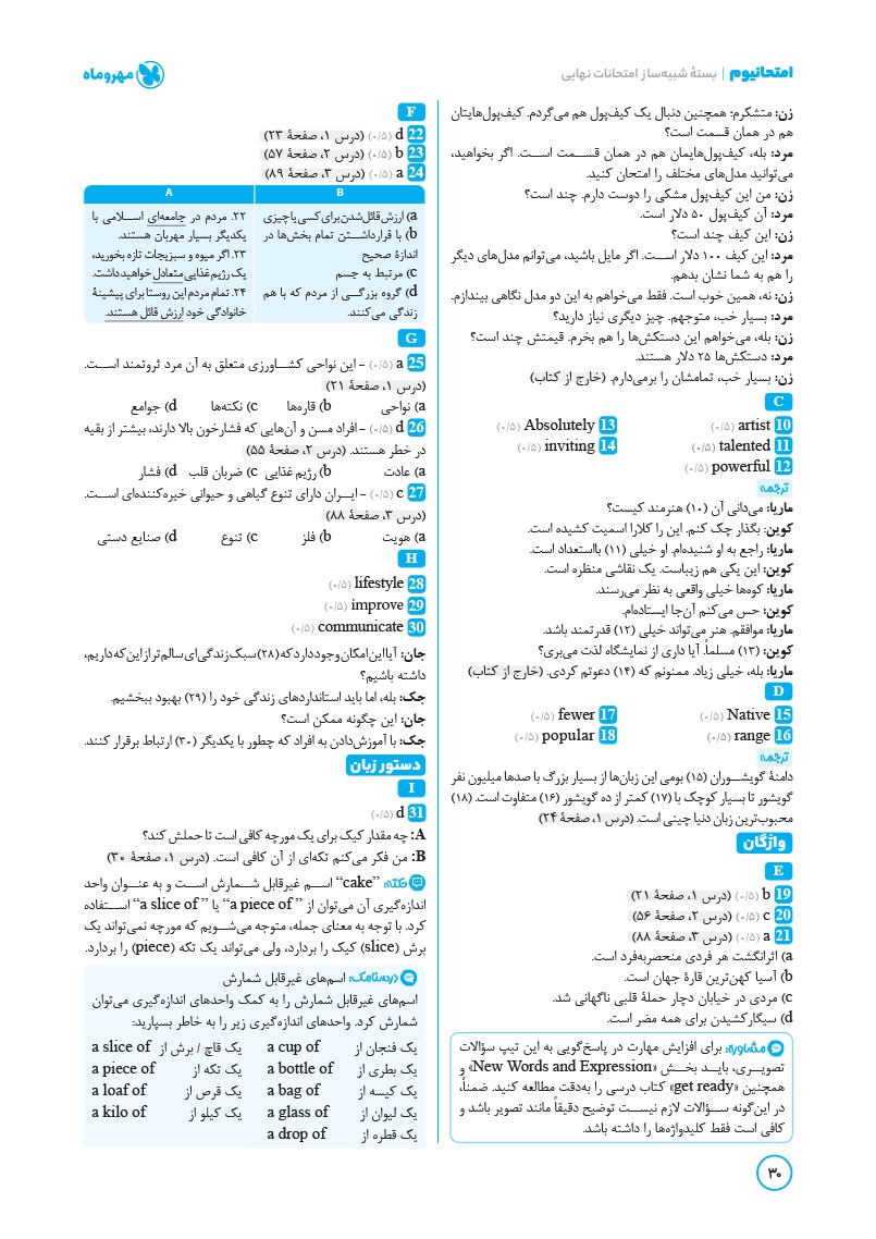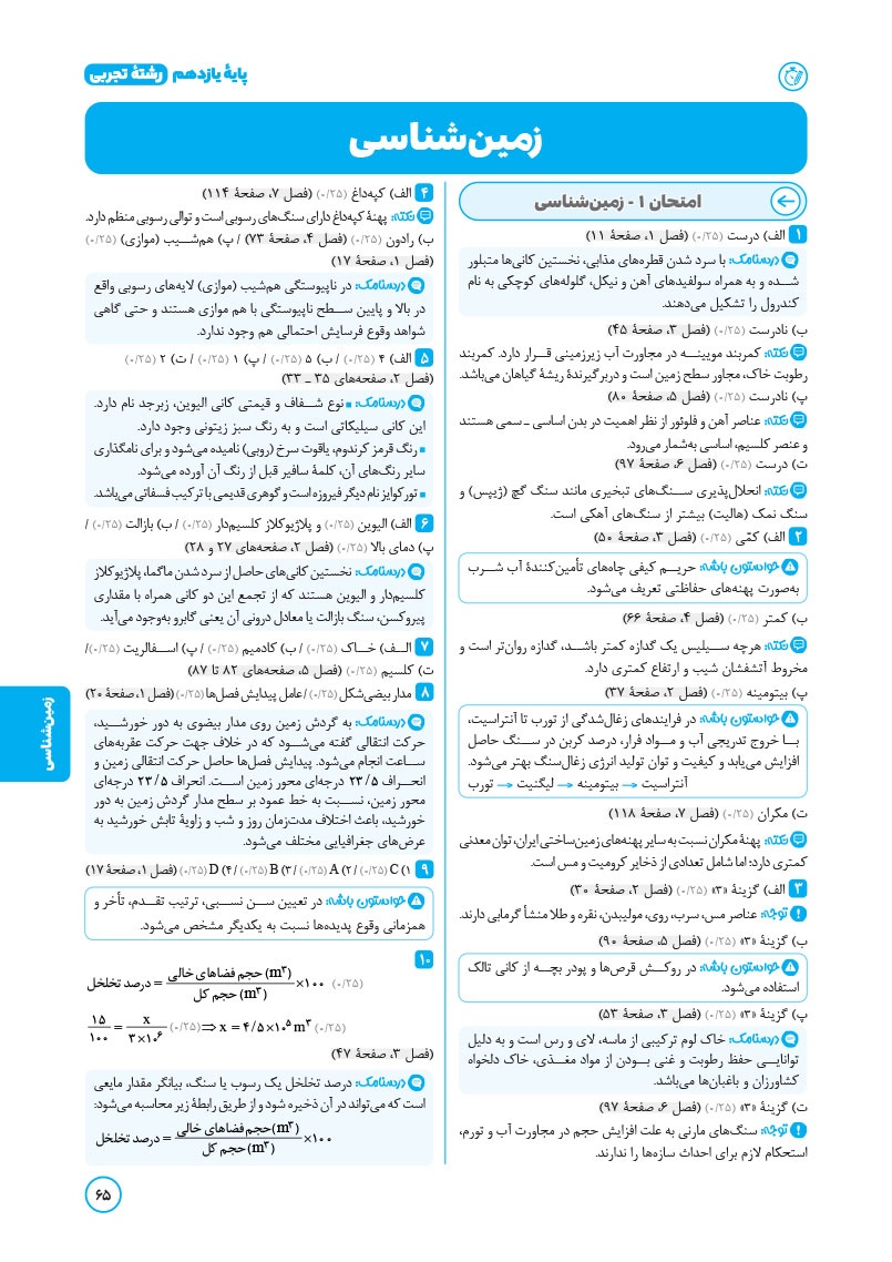 - پاسخنامه ی تشریحی غنی شده با کادرهای آموزشی همراه با ریزبارم و آدرس هر سوال