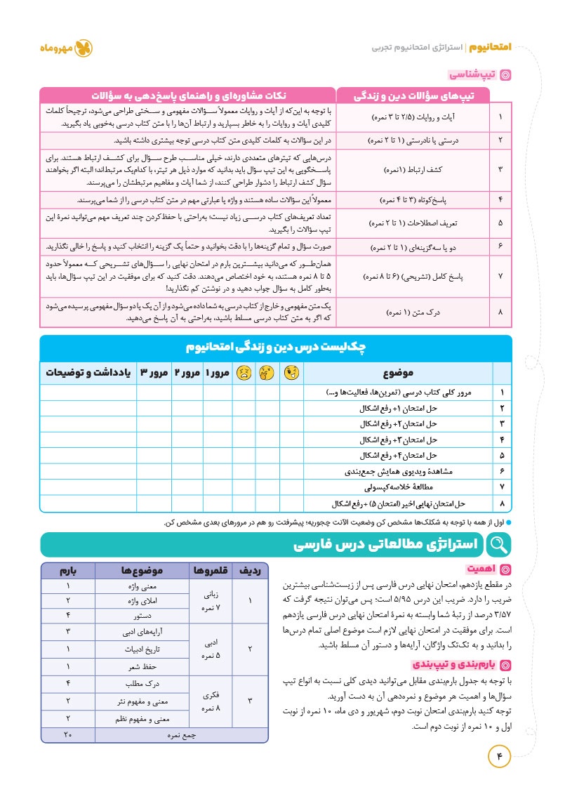 - دفترچه ی استراتژی و تحلیل انواع تیپهای سوالات نهایی و برنامه ی مطالعاتی