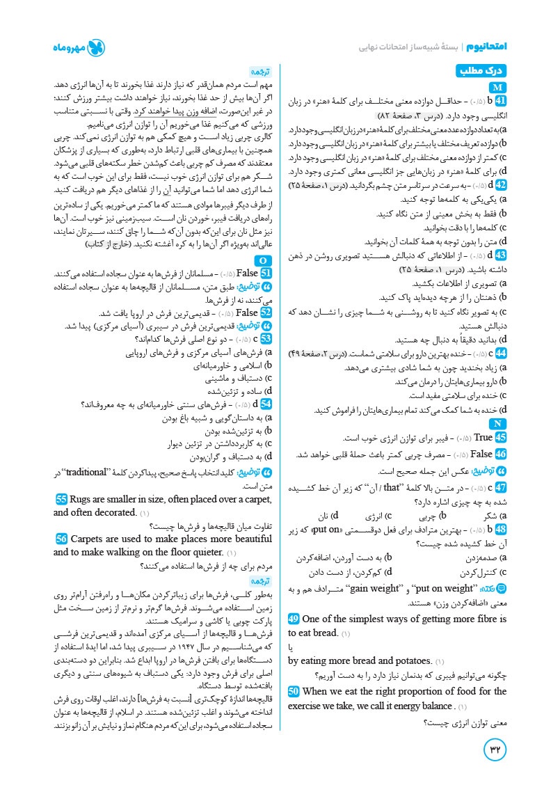 - پاسخنامه واقعاً تشریحی و تحلیل پاسخها به همراه ریزبارم و آدرس دقیق هر سوال
