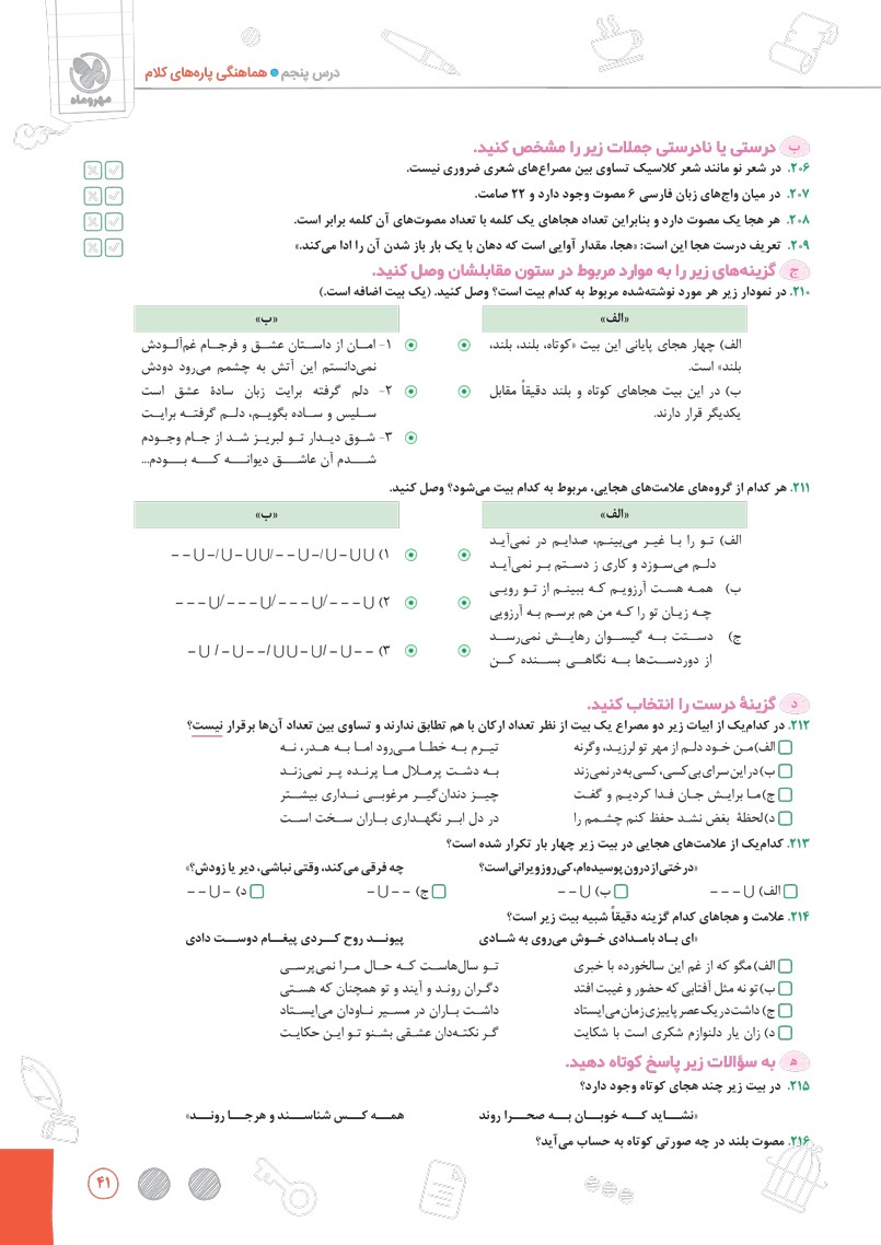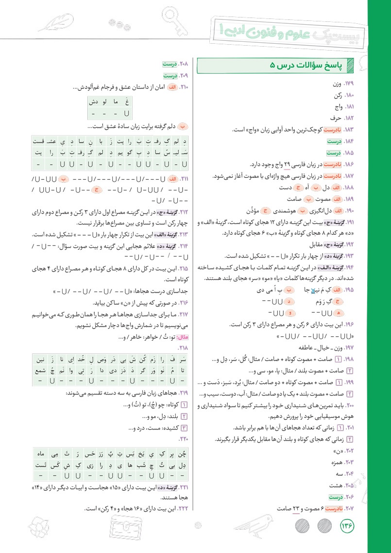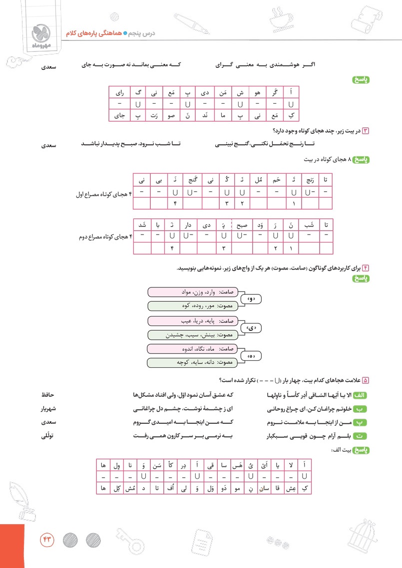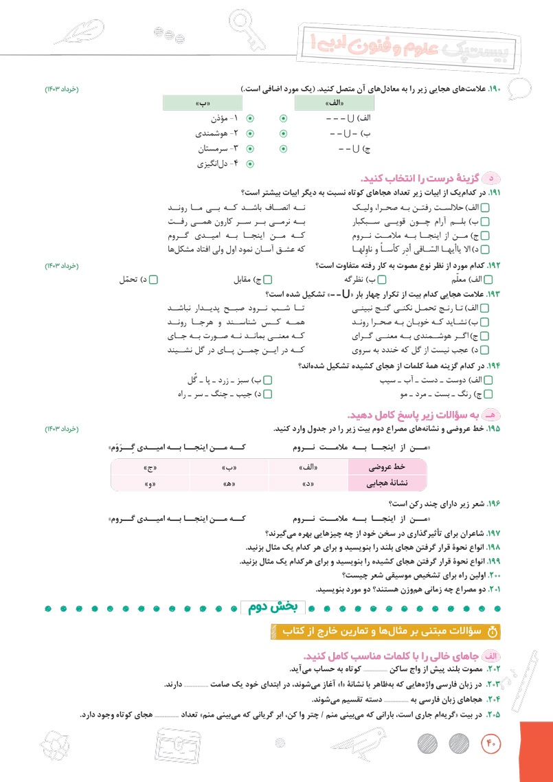 طبقه بندی سوالات عروض و قافیع بر اساس بیت های داخل و خارج از کتاب درسی