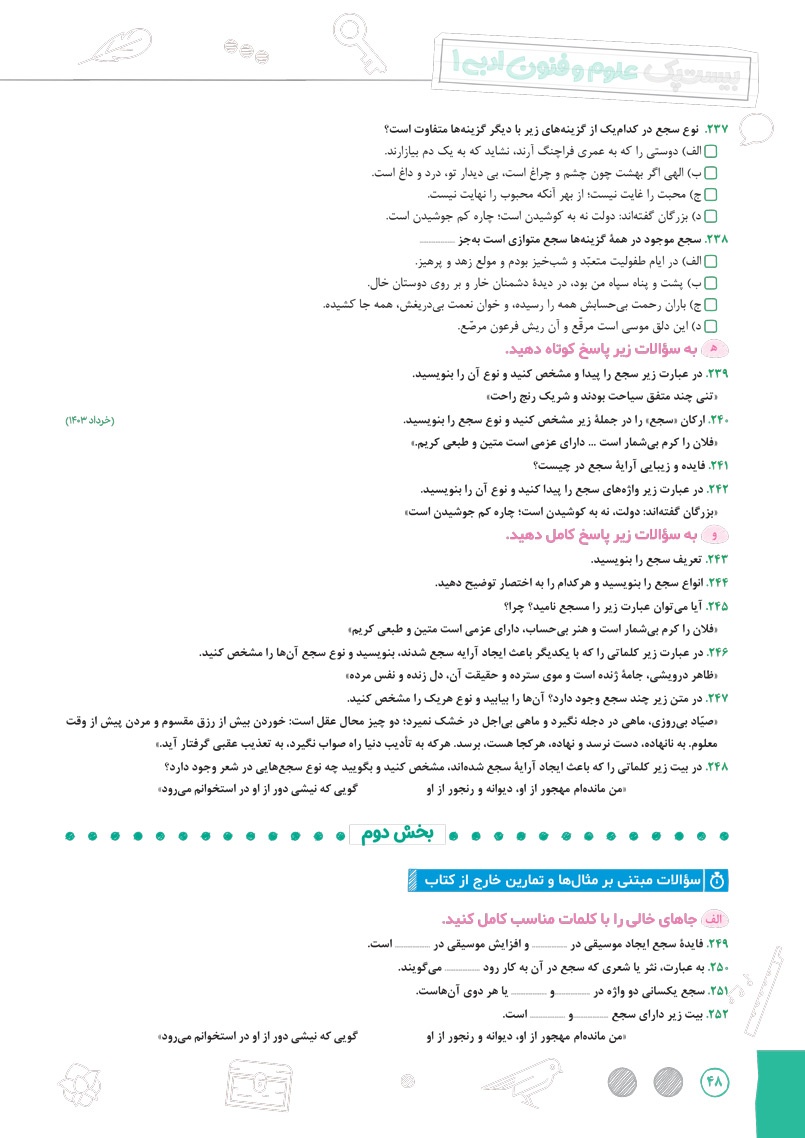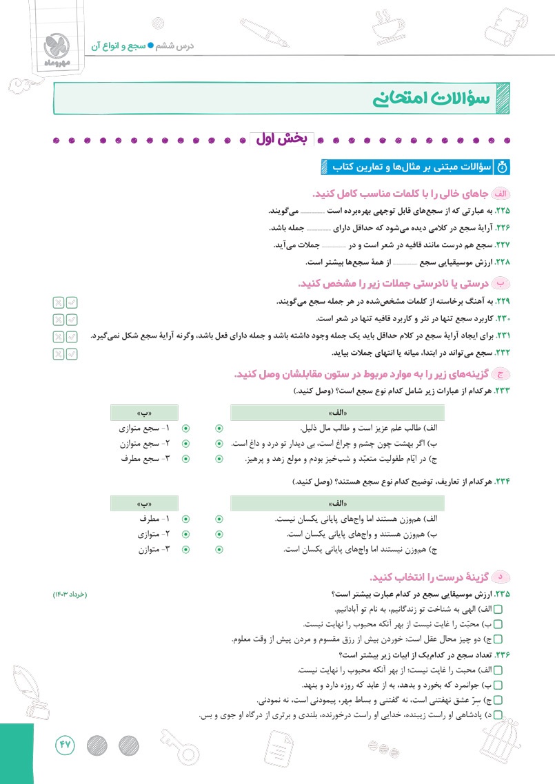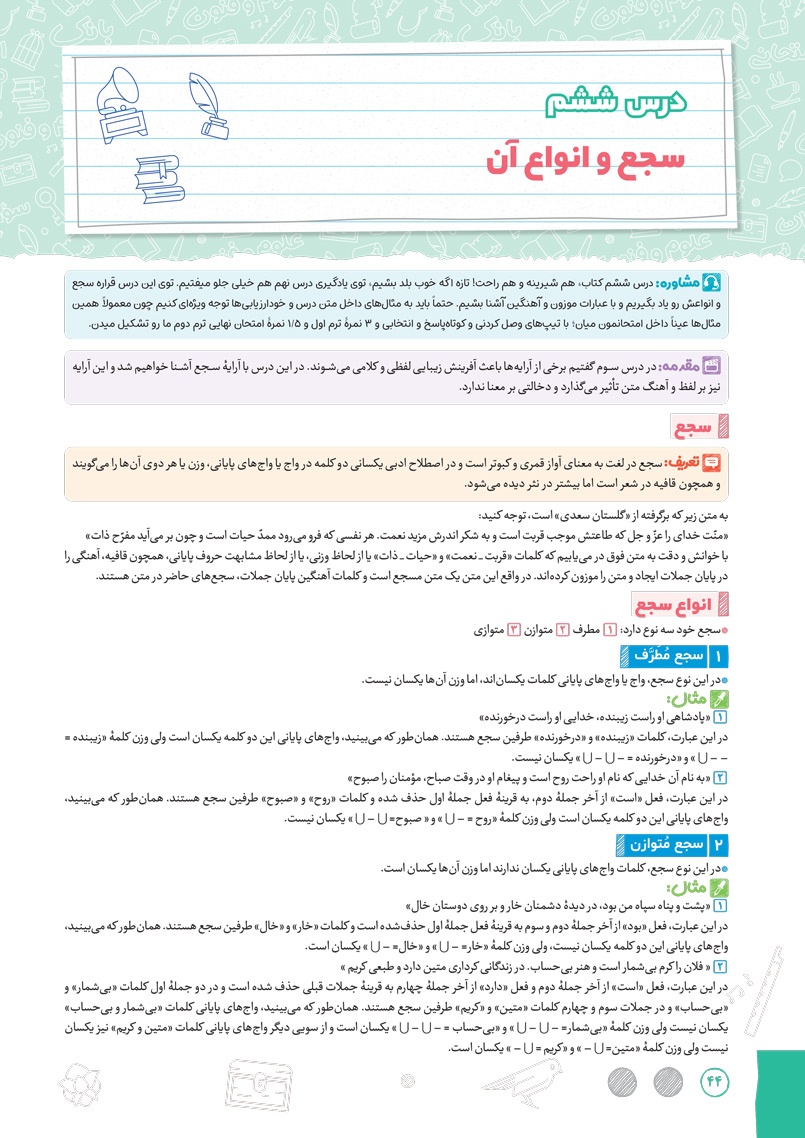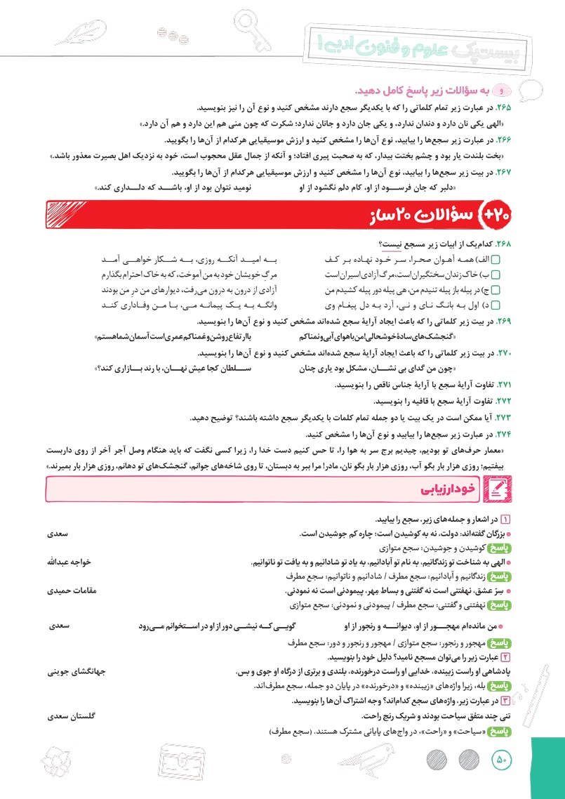 اراءه انواع سوال های جدید رایج و امتحان نهایی برای سوالات درس های مربوط به آرایه های ادبی