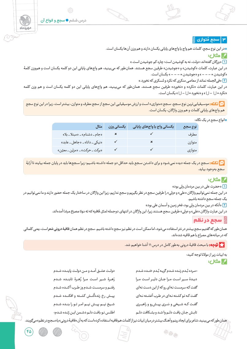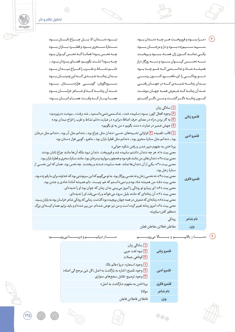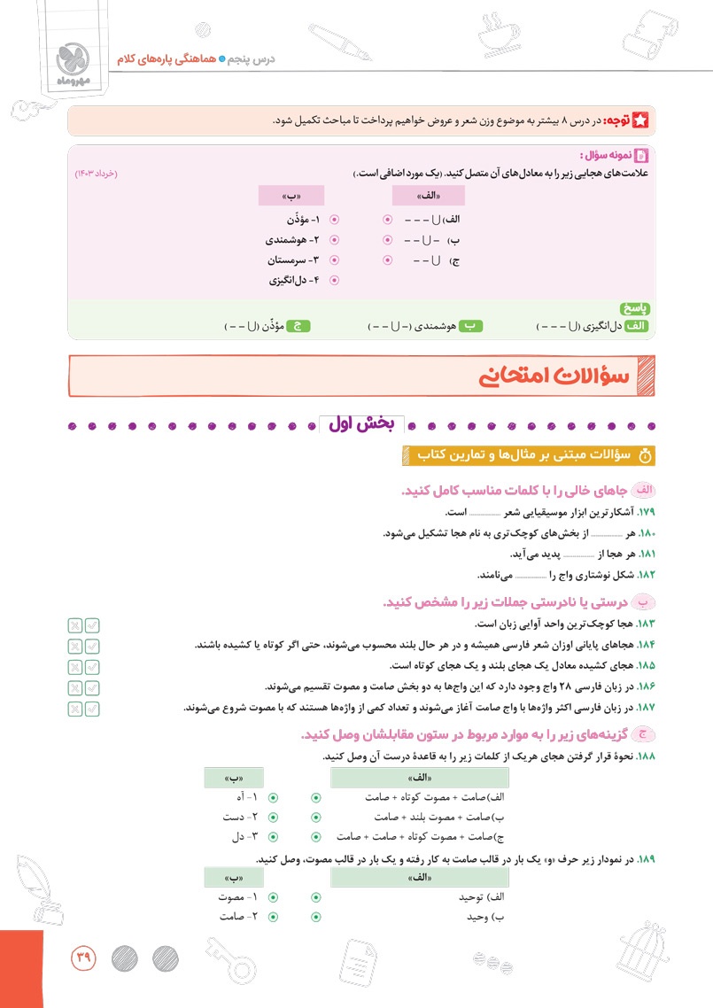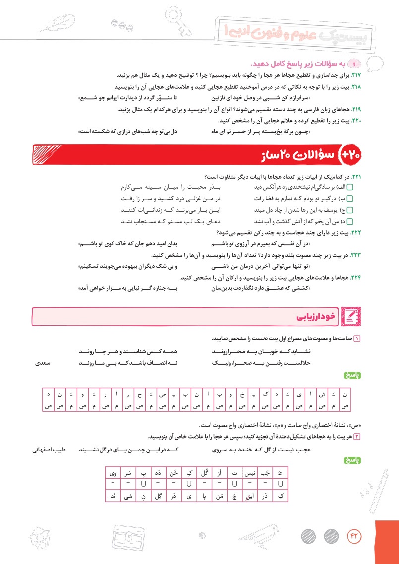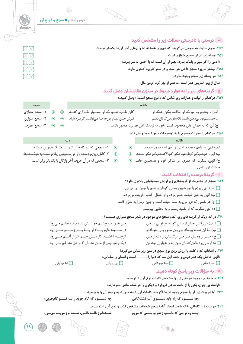 اراءه انواع سوال های جدید رایج و امتحان نهایی برای سوالات درس های مربوط به آرایه های ادبی