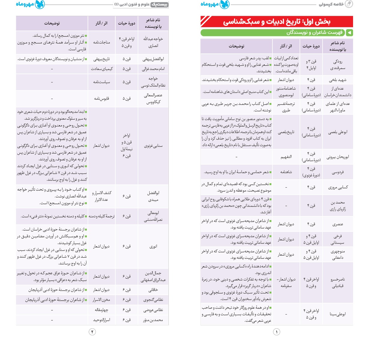 بخش بندی موضوعی سوالات درس های تاریخ ادبیات و سبک شناسی