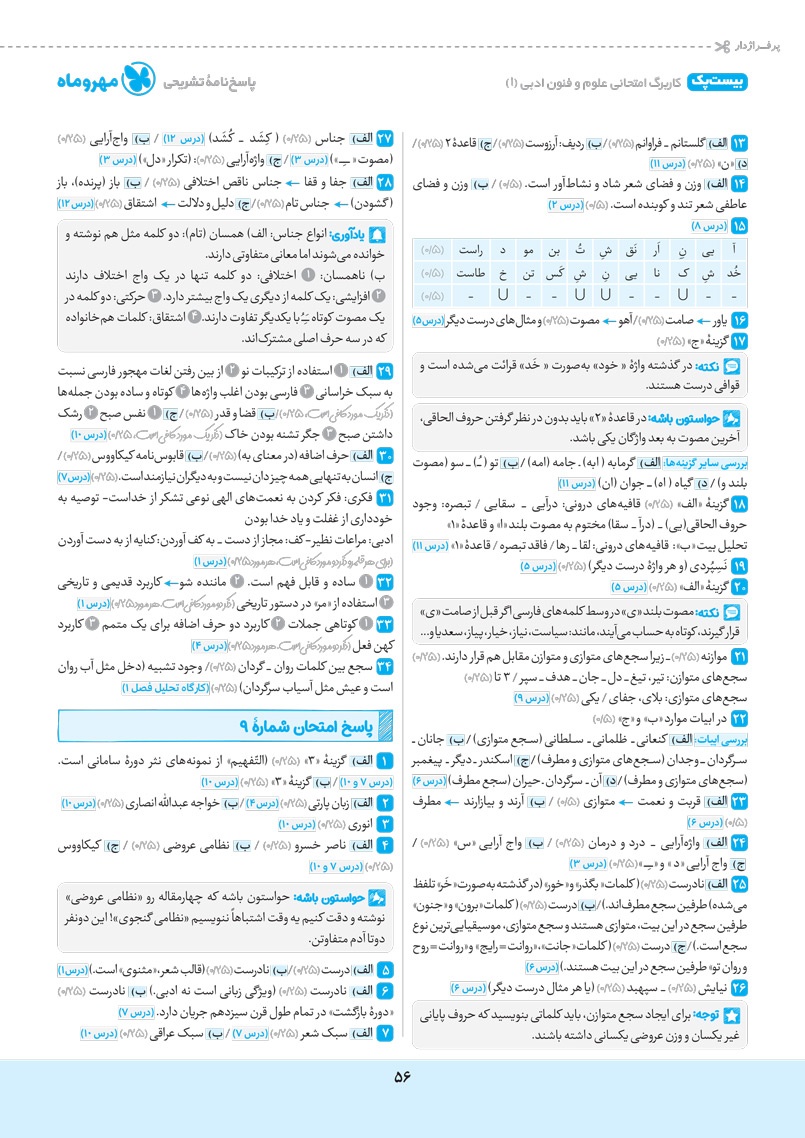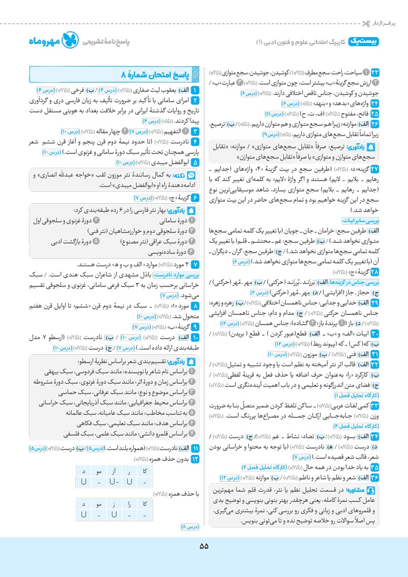 - پاسخنامه واقعا تشریحی به همراه نکات امتحانی و جمع بندی