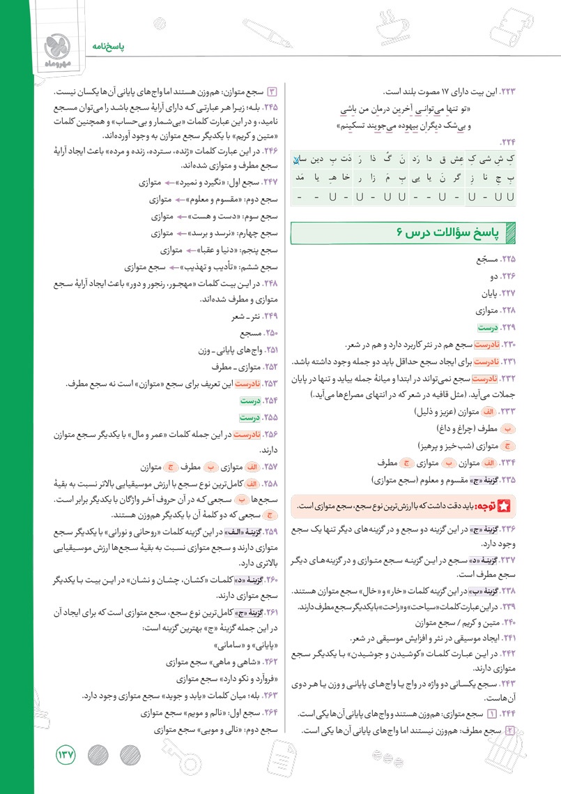 شما میتوانید با استفاده از کادرهای آموزشی داخل پاسخ نامه رفع اشکال کنید و از خلاصه کپسولی برای مرور مطالب مهم استفاده نمایید.