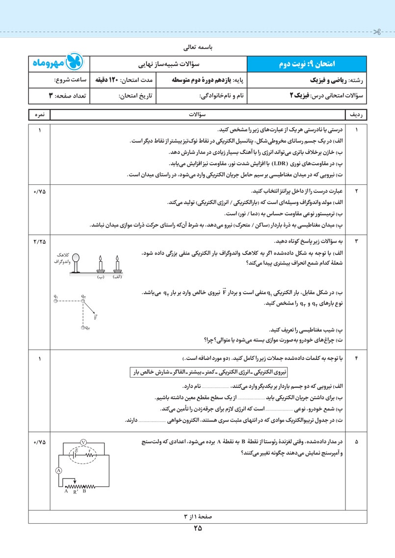 ما نیز برای آمادگی بیشتر شما و کسب موفقیت در امتحانات نوبت اول و نهایی،امتحان های کاربرگ را با ظاهری شبیه به برگه های امتحانی طراحی کرده ایم تا فضای حوزه امتحانی بیشتر برای شما شبیه سازی شود .