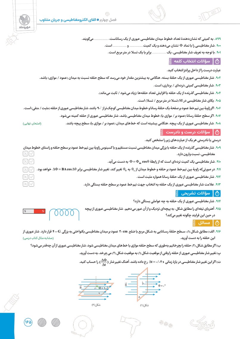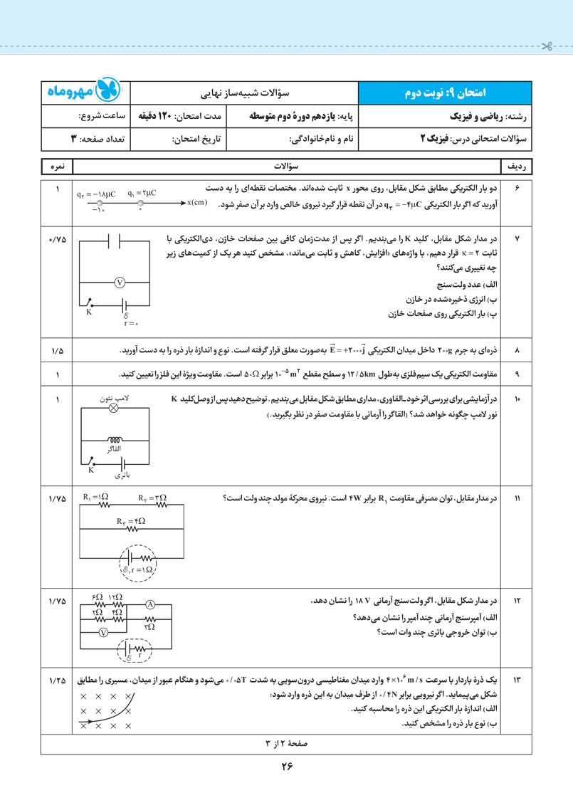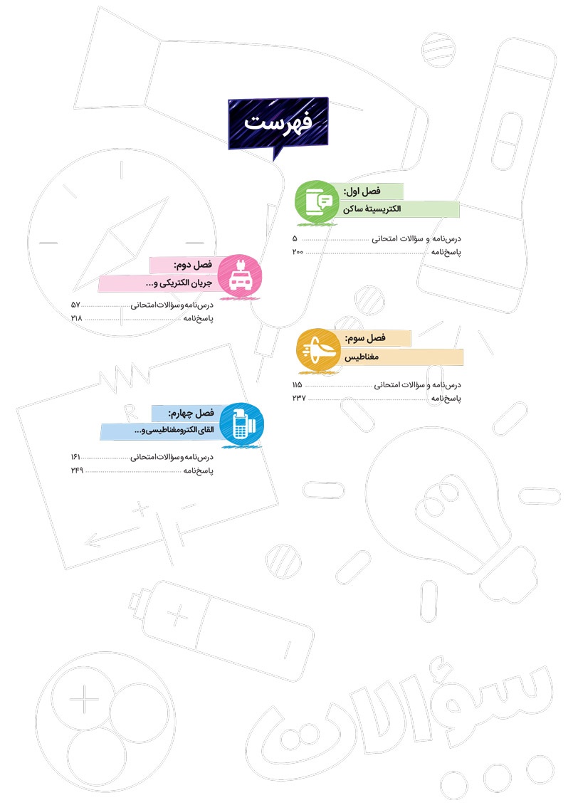 بنابراین پیشنهاد میکنیم پس از مطالعه هر فصل از کتاب پرسوال، امتحان همان فصل را جدا کنید و در شرایط مشابه حوزه امتحانی خودتان را محک بزنید بعد از امتحان نیز با توجه به بارم بندی هر سوال در پاسخ نامه، برگه خود را تصحیح و تحلیل کنید.