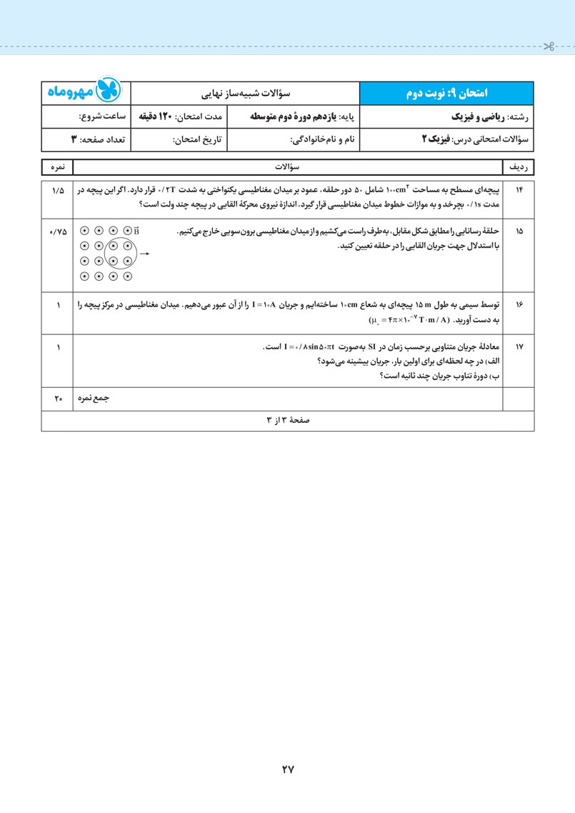 بسته ای که در دست دارید شامل 3 مدل امتحان است: