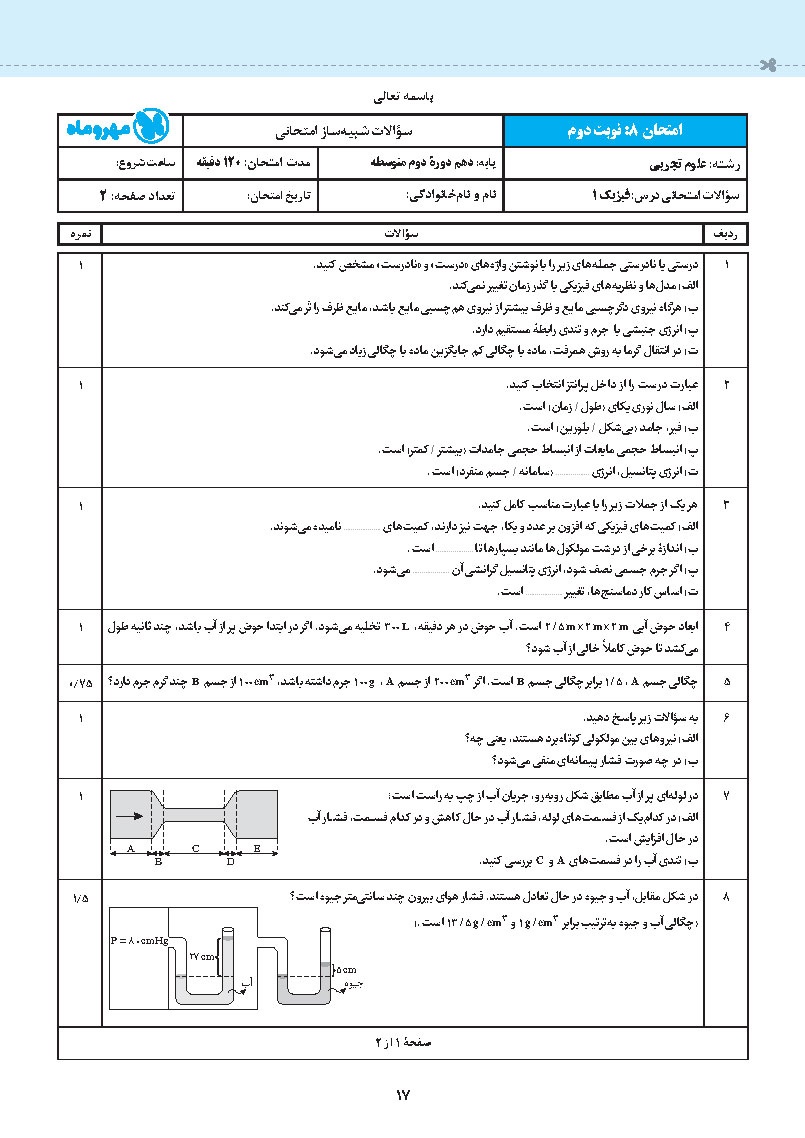ما نیز برای آمادگی بیشتر شما و کسب موفقیت در امتحانات نوبت اول و دوم،امتحان های کاربرگ را با ظاهری شبیه به برگه های امتحانی طراحی کرده ایم تا فضای حوزه امتحانی بیشتر برای شما شبیه سازی شود .