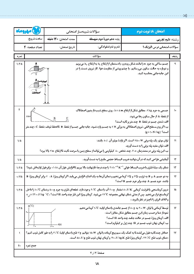 در نهایت با حل سوالات دو امتحان نهایی اخیر به آمادگی کامل خواهید رسید.