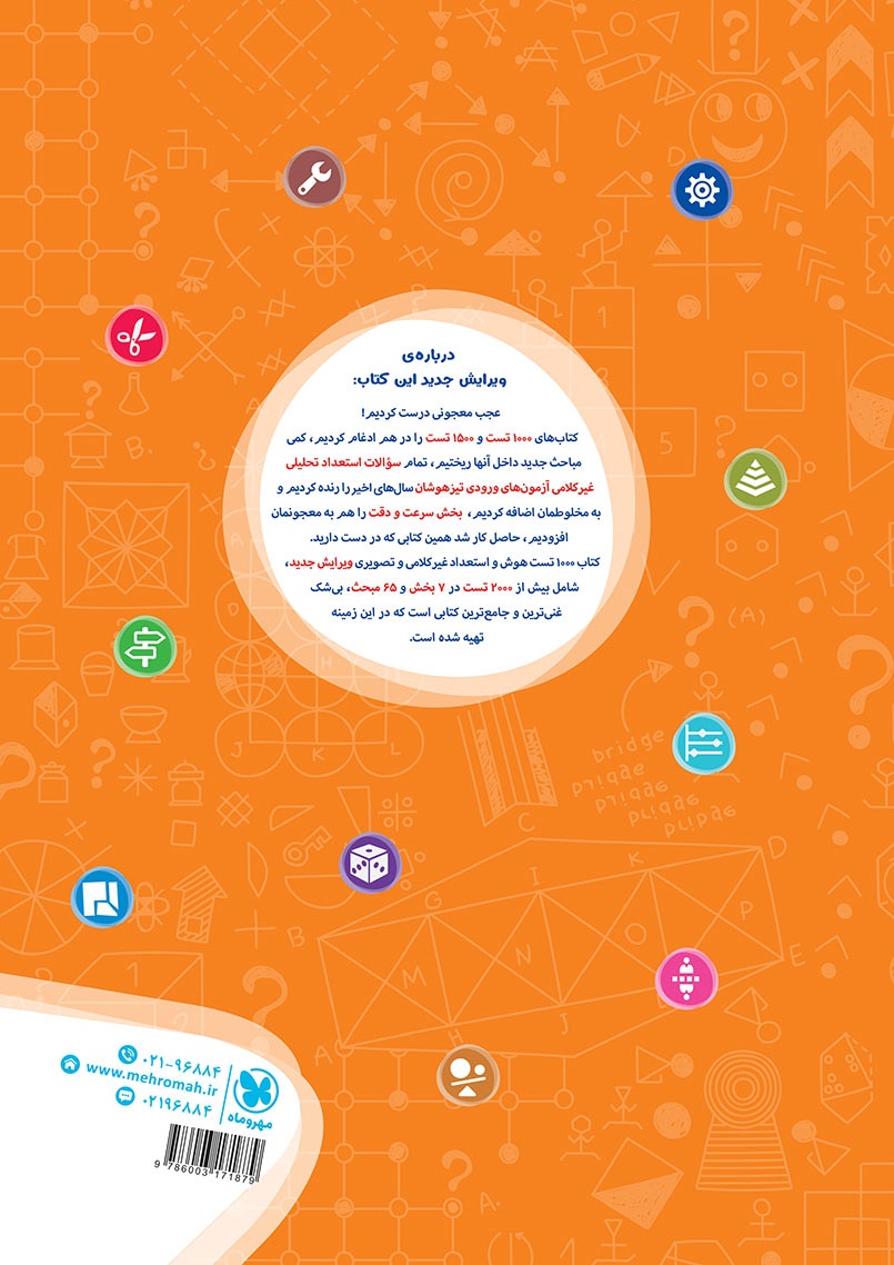 کتاب 1000 تست هوش و استعداد غیر کلامی و تصویری ویرایش جدید،شامل بیش از 2000 تست در 7 بخش و 65 مبحث، بیشک غنیترین و جامعترین کتابی است که در این زمینه تهیه شده است.